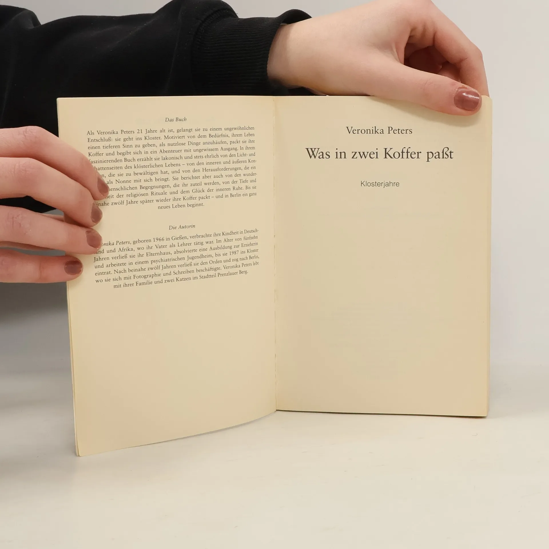 Warum entschließt sich eine junge Frau, ins Kloster zu gehen? Ist es möglich, in der Abgeschiedenheit über seine Grenzen hinwegzugehen? Als sie sich für das Leben im Kloster entscheidet, ist Veronika Peters 21 Jahre alt. Motiviert von dem Bedürfnis, ihrem Leben einen tieferen Sinn zu geben, als nutzlose Dinge anzuhäufen, packt sie ihre Koffer und begibt sich in ein Abenteuer mit ungewissem Ausgang. In ihrem faszinierenden Buch erzählt sie lakonisch und offen von den Licht- und Schattenseiten des klösterlichen Lebens – von den inneren und äußeren Konflikten, die sie zu bewältigen hat, aber auch von den wunderbaren menschlichen Begegnungen, die ihr dort zuteil werden. Bis sie beinahe zwölf Jahre später wieder ihre Koffer packt und in Berlin ein ganz neues Leben beginnt.