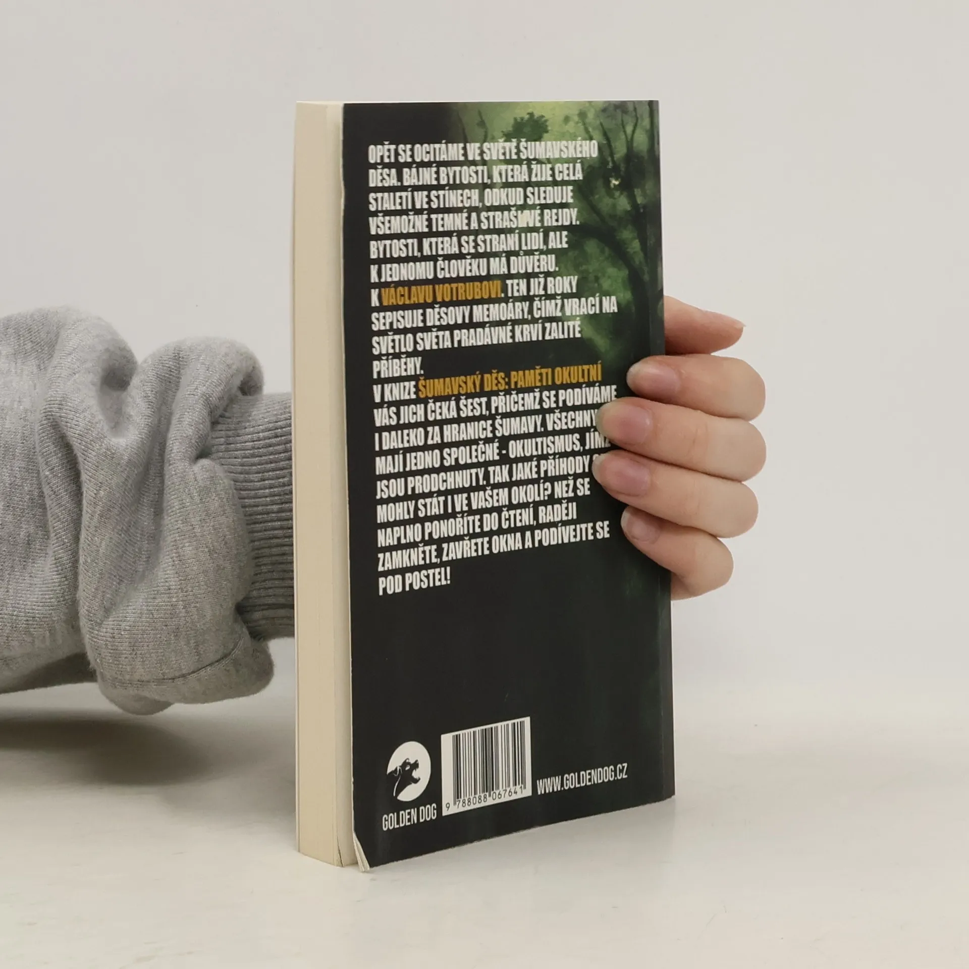 Opět se ocitáme ve světě Šumavského Děsa. Bájné bytosti, která žije celá staletí ve stínech, odkud sleduje všemožné temné a strašlivé rejdy. Bytosti, která se straní lidí, ale k jednomu člověku má důvěru. K Václavu Votrubovi. Ten již roky sepisuje Děsovy memoáry, čímž vrací na světlo světa pradávné krví zalité příběhy.V knize vás jich čeká šest, přičemž se podíváme i daleko za hranice Šumavy. Všechny mají jedno společné – okultismus, jímž jsou prodchnuty. Tak jaké příhody se mohly stát i ve vašem okolí? Než se naplno ponoříte do čtení, raději zamkněte, zavřete okna a podívejte se pod postel!