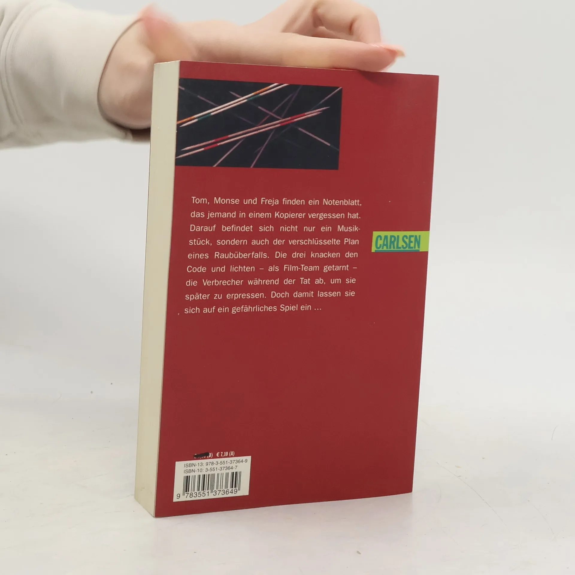Monse, Tom und Freya bekommen den Plan eines Raubüberfalles in die Hände und beobachten und filmen diesen. Mit den Beweismaterialien versuchen sie nun die Räuber zu erpressen und geraten Gefahr.Tom und seine Freunde Monse und Freya finden im Kopierer der Stadtbücherei ein vergessenes Notenblatt, das sich als eine codierte Anleitung für einen Raubüberfall entpuppt. Freya knackt den Code, und Tom hat die Idee, die Räuber auf frischer Tat zu filmen, sozusagen als Dokumentarfilm. Während die Polizei im Dunkeln tappt, haben die drei Freunde jede Menge Beweismaterial. Übermütig geworden, wollen sie einen Anteil an der Beute und lassen sich auf ein gefährliches Spiel ein. Aber dann nimmt die Geschichte einen völlig unerwarteten Verlauf.