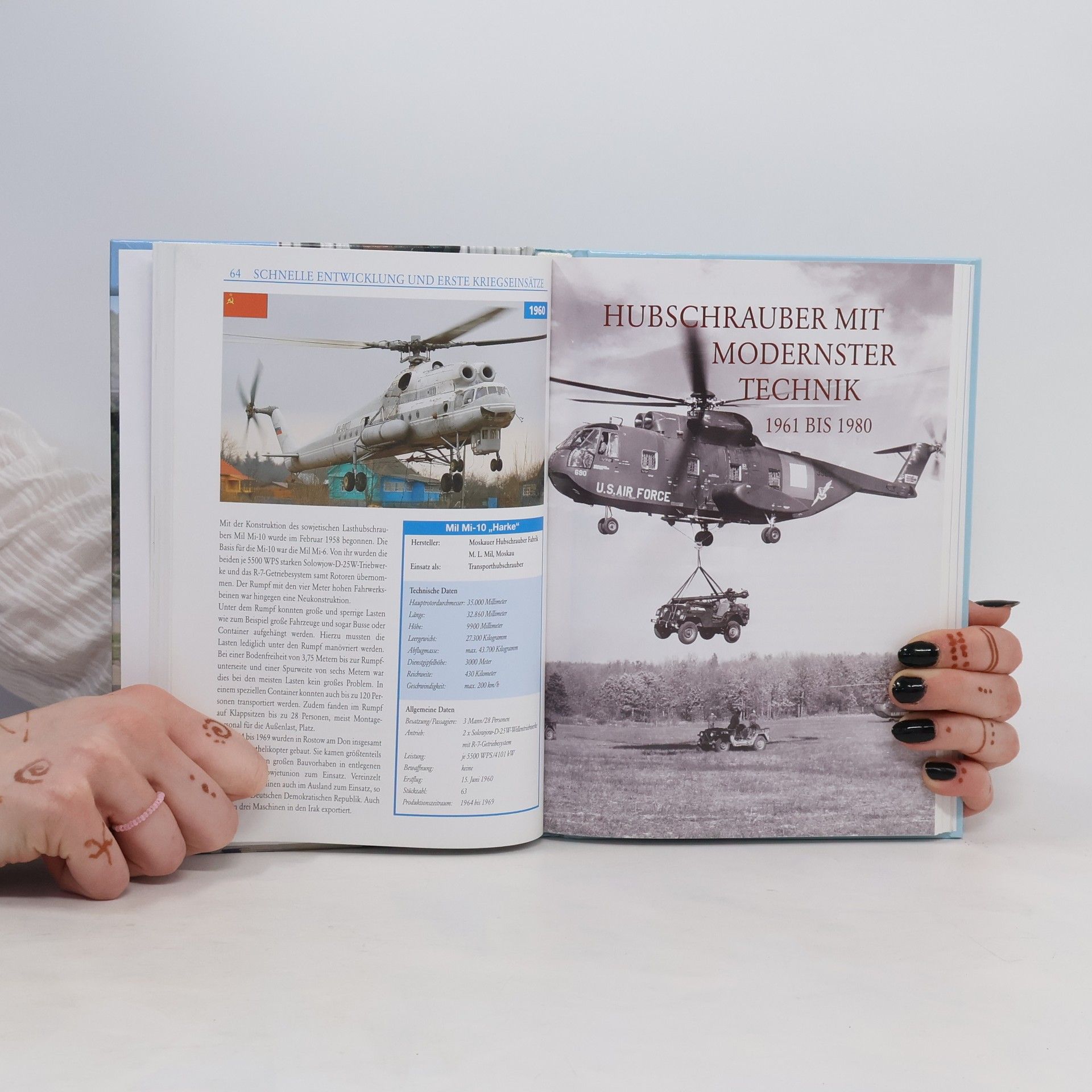 • Wer war Etienne Oehmichen? • Was versteht man unter „Koaxial-Bauweise“? • Wie schnell konnte der Piasecki YH-16A fliegen? • Was ist ein VTOL-Flugzeug? • Wie groß war die Abflugmasse des Mil Mi-10? • Wann fand der Erstflug des Eurocopters „Tiger“ statt? Schon Leonardo da Vinci hatte Ende des 15. Jahrhunderts Skizzen eines Hubschraubers angefertigt, aber erst im 20. Jahrhundert gelang die technische Umsetzung dieser revolutionären Idee. Am 13. November 1907 hob schließlich Paul Cornu mit seinem 260 Kilogramm schweren fliegenden Fahrrad für zwanzig Sekunden senkrecht vom Boden ab. In diesem Nachschlagewerk werden dem Leser in kurzen, verständlichen Texten alle wichtigen Fragen zu den meisten internationalen privaten und militärischen Helikoptern beantwortet. Großzügige Tabellen liefern viele interessante technische Daten der vorgestellten Hubschrauber, die teils farbigen Abbildungen lassen wertvolle Details erkennen.