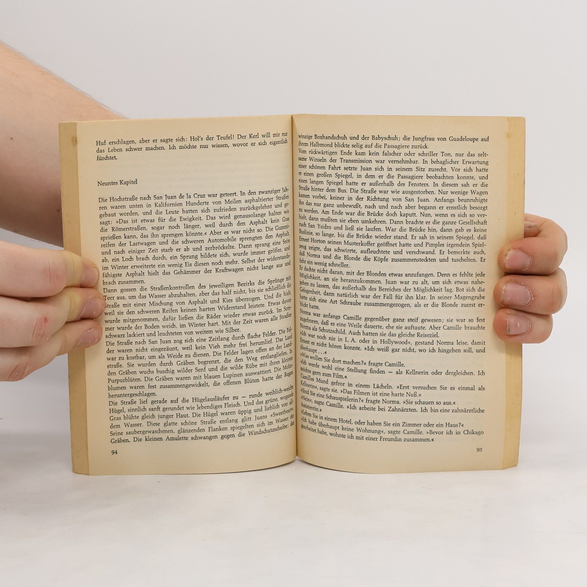 "Zugegeben: Die alte Straße von Rebel Corners nach San Juan de la Cruz ist steil und ziemlich gewunden. Dennoch hätte es für Juan Chicoy und seinen betagten Autobus »Sweetheart« eine ganz normale Fahrt werden können, wäre nicht der San Ysidro über die Ufer getreten. Um nicht mit seinen Passagieren in die reißenden Fluten zu stürzen, muss Juan auf einen Seitenweg ausweichen - und prompt landet »Sweetheart« im Graben. Erst in dieser Krise zeigt sich, dass Juan nicht einfach nur zahlende Passagiere, sondern lebendige, leidenschaftliche Menschen mit Wünschen und Plänen an Bord hat. Da sind sein Mechaniker Pimples und die Serviererin Norma, die von Clark Gable und Hollywood träumt, da sind die schöne Mildred Pritchard und ihre Eltern, der Nachtclub-Star Camille, der Scherzartikel-Vertreter Ernest, eine zufällig zusammengewürfelte Gesellschaft von Reisenden, die bei diesem unfreiwilligen Abenteuer zu sich selbst finden. Auch Juan, so stellt sich heraus, hat mehr im Sinn als nur den täglichen Pendelverkehr über die Berge. Steinbecks kraftvolle, heitere Sprache wurzelt ebenso in seiner lebensbejahenden Haltung wie in seiner Kenntnis der dunklen und verworrenen Kräfte im Menschen." (dtv)