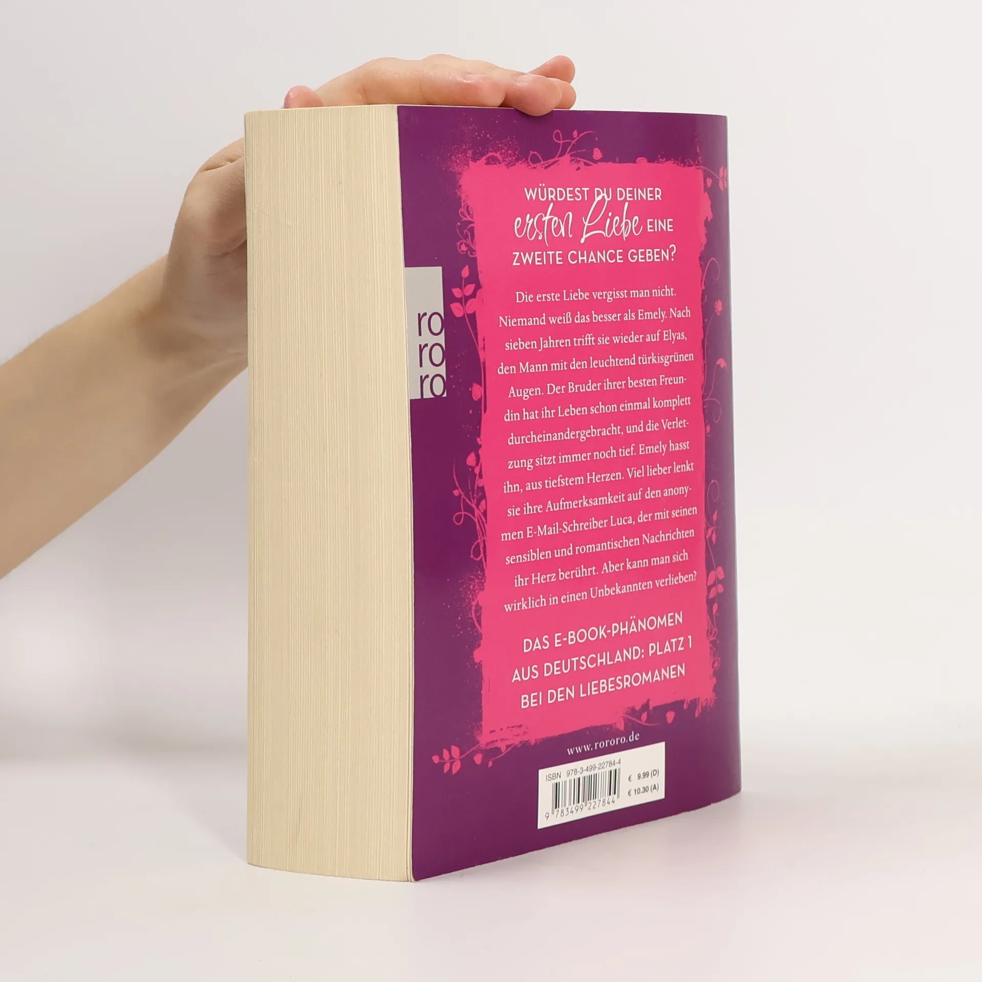 Würdest du deiner ersten Liebe eine zweite Chance geben? Die erste Liebe vergisst man nicht. Niemand weiß das besser als Emely. Nach sieben Jahren trifft sie wieder auf Elyas, den Mann mit den leuchtend türkisgrünen Augen. Der Bruder ihrer besten Freundin hat ihr Leben schon einmal komplett durcheinander gebracht, und die Verletzung sitzt immer noch tief. Emely hasst ihn, aus tiefstem Herzen. Viel lieber lenkt sie ihre Aufmerksamkeit auf den anonymen E-Mail-Schreiber Luca, der mit seinen sensiblen und romantischen Nachrichten ihr Herz berührt. Aber kann man sich wirklich in einen Unbekannten verlieben?