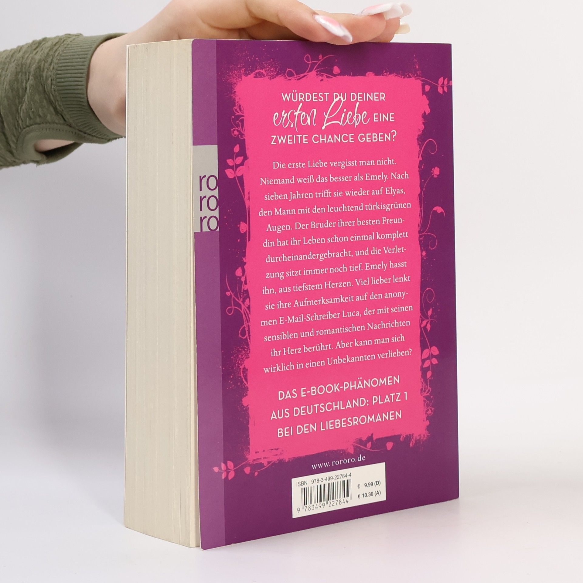 Würdest du deiner ersten Liebe eine zweite Chance geben? Die erste Liebe vergisst man nicht. Niemand weiß das besser als Emely. Nach sieben Jahren trifft sie wieder auf Elyas, den Mann mit den leuchtend türkisgrünen Augen. Der Bruder ihrer besten Freundin hat ihr Leben schon einmal komplett durcheinander gebracht, und die Verletzung sitzt immer noch tief. Emely hasst ihn, aus tiefstem Herzen. Viel lieber lenkt sie ihre Aufmerksamkeit auf den anonymen E-Mail-Schreiber Luca, der mit seinen sensiblen und romantischen Nachrichten ihr Herz berührt. Aber kann man sich wirklich in einen Unbekannten verlieben?