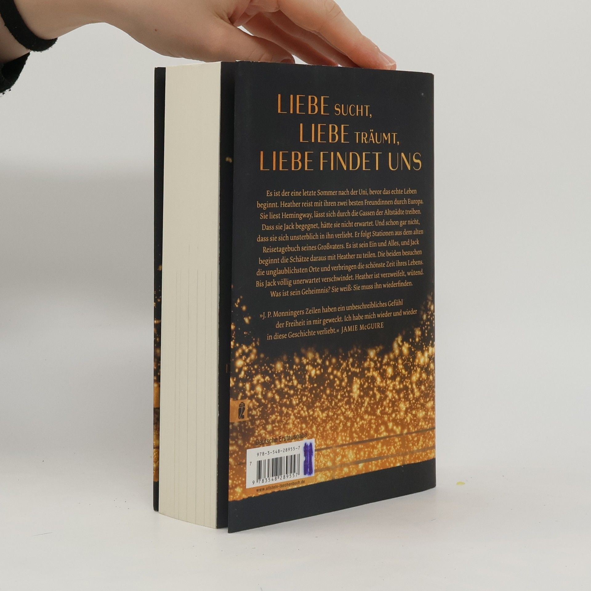 Liebe sucht, Liebe träumt, Liebe findet uns Es ist der eine letzte Sommer nach der Uni, bevor das echte Leben beginnt. Heather reist mit ihren zwei besten Freundinnen durch Europa. Sie liest Hemingway, lässt sich durch die Gassen der Altstädte treiben. Dass sie Jack begegnet, hätte sie nicht erwartet. Und schon gar nicht, dass sie sich unsterblich in ihn verliebt. Er folgt Stationen aus dem alten Reisetagebuch seines Großvaters. Es ist sein Ein und Alles, und Jack beginnt die Schätze daraus mit Heather zu teilen. Die beiden besuchen die unglaublichsten Orte und verbringen die schönste Zeit ihres Lebens. Bis Jack völlig unerwartet verschwindet. Heather ist verzweifelt, wütend. Was ist sein Geheimnis? Sie weiß: Sie muss ihn wiederfinden. »Romantisch und unvergesslich« – Nicholas Sparks »J. P. Monningers Zeilen haben ein unbeschreibliches Gefühl der Freiheit in mir geweckt. Ich habe mich wieder und wieder in diese Geschichte verliebt.« – Jamie McGuire