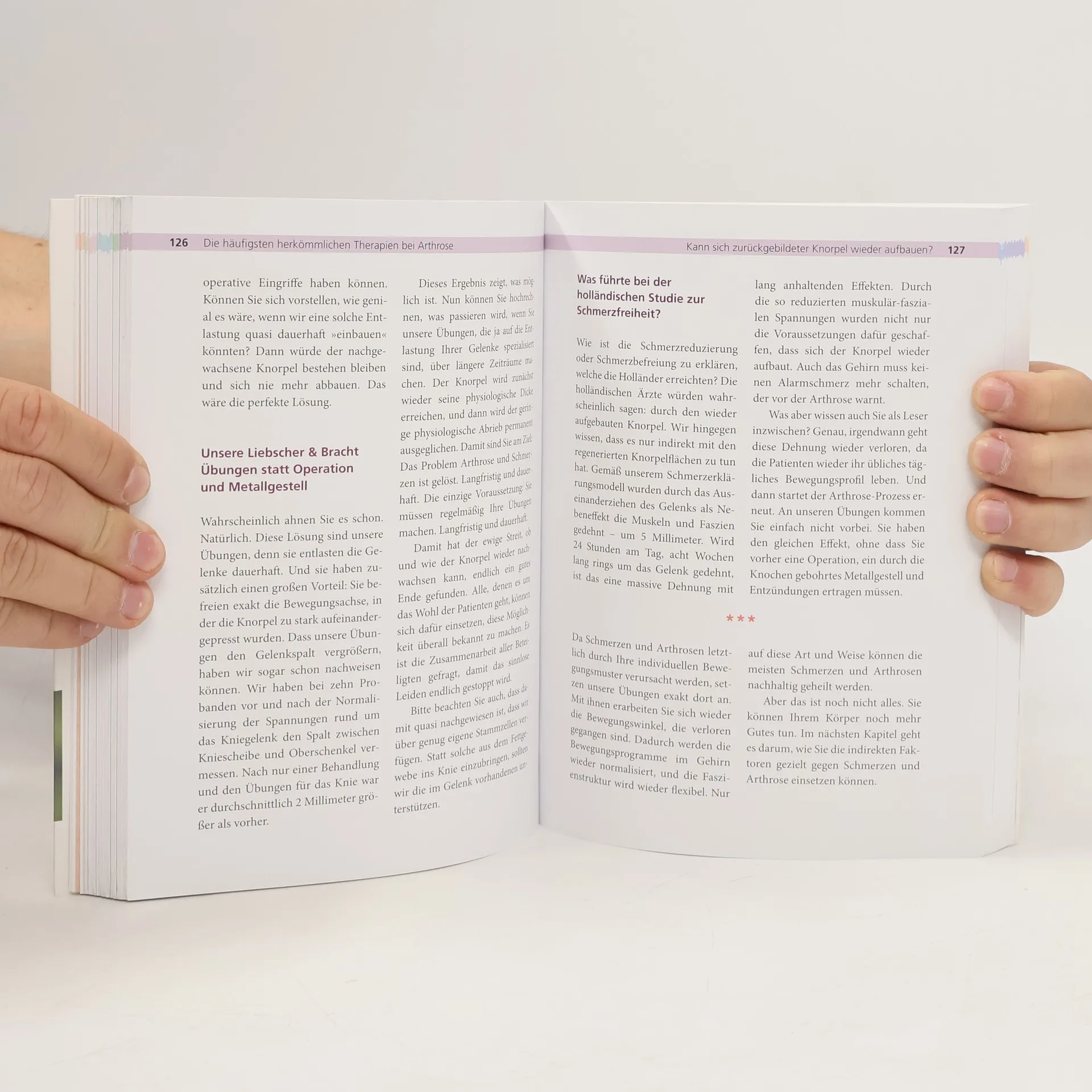 Arthrose ist die weltweit häufigste Gelenkerkrankung und das Schmerzthema Nr. 1. Viele meinen bis heute, Arthrose sei ein von der Genetik vorbestimmtes, nicht heilbares Schicksal. Die bekannten Schmerzspezialisten Liebscher & Bracht sind überzeugt vom Gegenteil. Neuere Studien beweisen, dass mit gezielter Ernährung und speziell entwickelten Übungen bereits degenerierter Knorpel nachwachsen kann. Auch den vermeintlichen Arthroseschmerz entlarven die anerkannten Therapeuten als Spannungsschmerz des umliegenden Gewebes. Dieses Buch erklärt, wie wir Arthrose wirklich umkehren können. Es bietet ein hochwirksames Regenerationsprogramm mit zahlreichen bebilderten Übungen und ausführlichen Empfehlungen zur richtigen Ernährung.