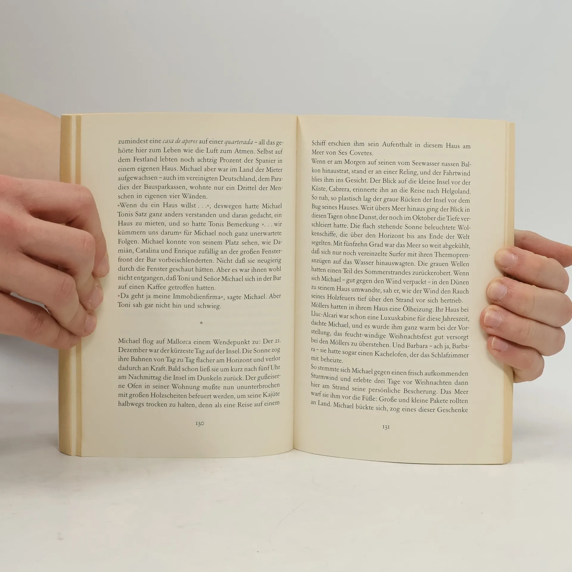Dieser Roman ist eine Entdeckungsreise in das wahre Mallorca, ins Innere einer Insel, die hinter Mauern des Touristenghettos ihr eigenes Leben führt. Michael Weidling, Fernsehjornalist im Bonner Politiktheater, steckt in einer Krise. Nach einem Blackout beim Kanzler-Interview kracht auch noch das Kartenhaus seiner Liebesbeziehung zusammen. An diesem Wendepunkt seines Lebens nimmt er sich eine Auszeit, geht vom Spielfeld und läßt sich auf das Abenteuer einer fremden Welt ein. Mit den Augen der Hauptperson erlebt der Leser das andere Mallorca, seine Menschen, die uralten Traditionen und Feste, die fast unsichtbaren Machtverhältnisse, die etwas bizarre Kolonie der deutschen Inselbewohner. Vor dem Hintergrund der farbigen mediterranen Landschaften, die ihr Gesicht im Verlauf der Jahreszeiten verändern, erlebt der Leser, wie Michael Weidling gerade in der Fremde zu sich selbst kommt und auf der Insel heimisch wird.