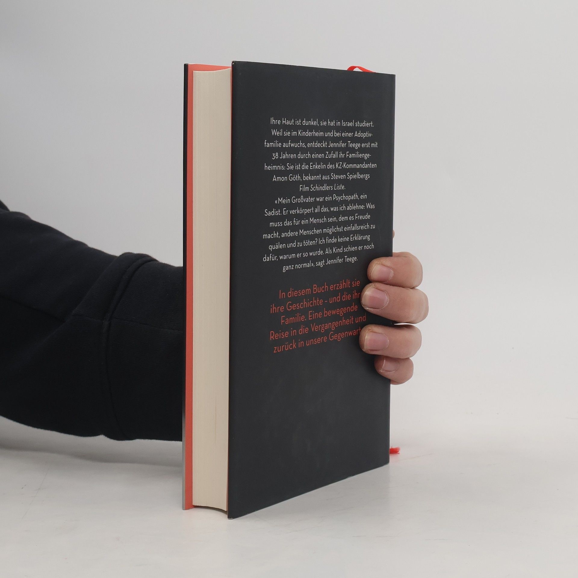 Es ist ein Schock, der ihr ganzes Selbstverständnis erschüttert: Mit 38 Jahren erfährt Jennifer Teege durch einen Zufall, wer sie ist. In einer Bibliothek findet sie ein Buch über ihre Mutter und ihren Großvater Amon Göth. Millionen Menschen kennen Göths Geschichte. In Steven Spielbergs Film «Schindlers Liste» ist der brutale KZ-Kommandant der Saufkumpan und Gegenspieler des Judenretters Oskar Schindler. Göth war verantwortlich für den Tod tausender Menschen und wurde 1946 gehängt. Seine Lebensgefährtin Ruth Irene, Jennifer Teeges geliebte Großmutter, begeht 1983 Selbstmord.Jennifer Teege ist die Tochter einer Deutschen und eines Nigerianers. Sie wurde bei Adoptiveltern groß und hat danach in Israel studiert. Jetzt ist sie mit einem Familiengeheimnis konfrontiert, das sie nicht mehr ruhen lässt. Wie kann sie ihren jüdischen Freunden noch unter die Augen treten? Und was soll sie ihren eigenen Kindern erzählen? Jennifer Teege beschäftigt sich intensiv mit der Vergangenheit. Sie trifft ihre Mutter wieder, die sie viele Jahre nicht gesehen hat.Gemeinsam mit der Journalistin Nikola Sellmair recherchiert sie ihre Familiengeschichte, sucht die Orte der Vergangenheit noch einmal auf, reist nach Israel und nach Polen. Schritt für Schritt wird aus dem Schock über die Abgründe der eigenen Familie die Geschichte einer Befreiung.