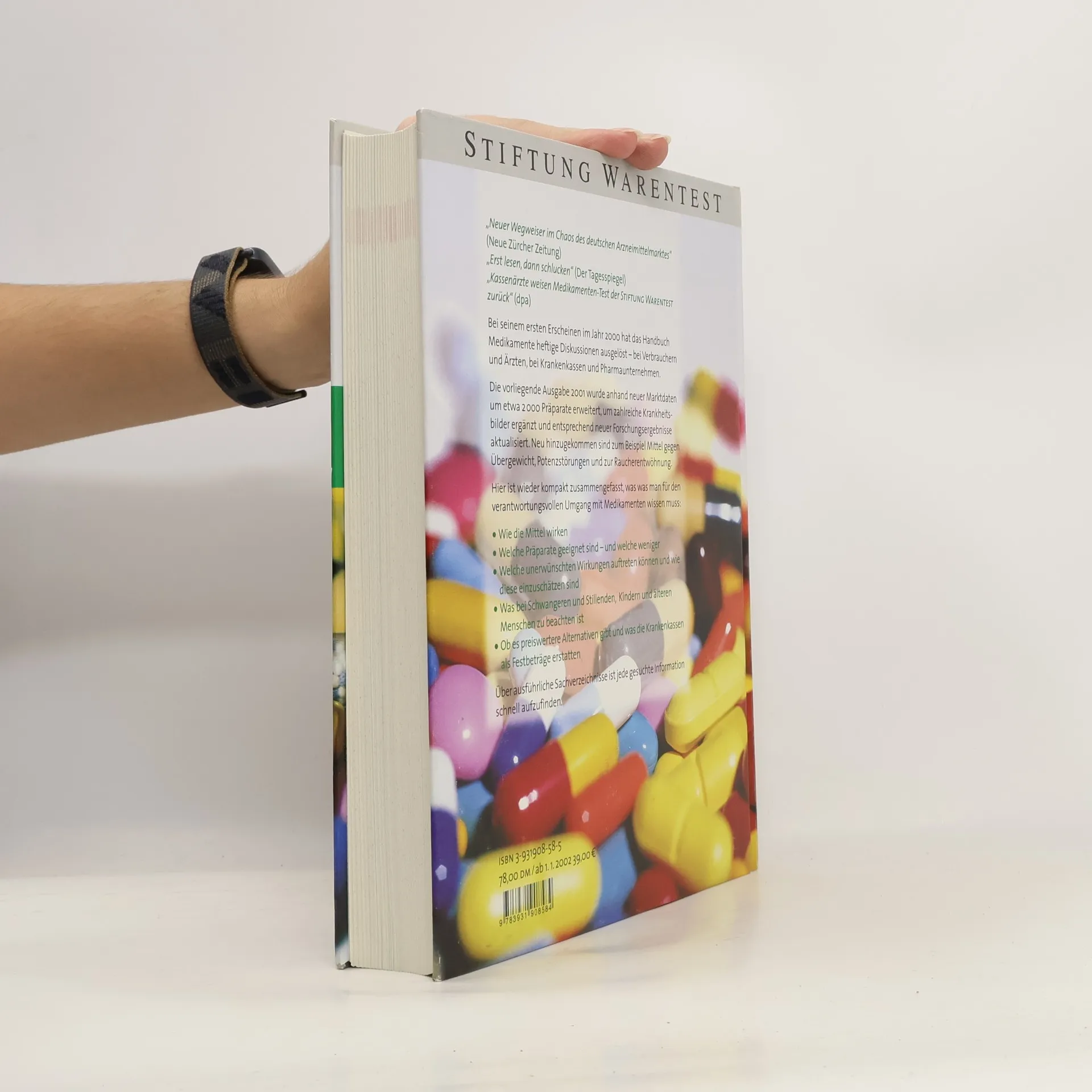 Das Handbuch Medikamente jetzt als limitierte Sonderausgabe: 1500 Seiten, 7000 häufig verschriebene Medikamente im Test, Symptome und Ursachen zahlreicher Krankheitsbilder, die Beschreibung der Wirkstoffe, Bewertungen und Preise. Bei dem Preis gehört dieses umfassende Gesundheitsbuch unbedingt in die Hausbibliothek. Wenn ein Arzt Medikamente verordnet, fallen einem die wirklich wichtigen Fragen oft erst später ein. Dieses Buch bietet dann Hilfe, erklärt die Wirkweise und die Wechselwirkungen, gibt Hinweise zur Einnahme und vor allem: Die Experten der Stiftung Warentest sagen, ob das Medikament überhaupt wirksam und für die Therapie geeignet ist.