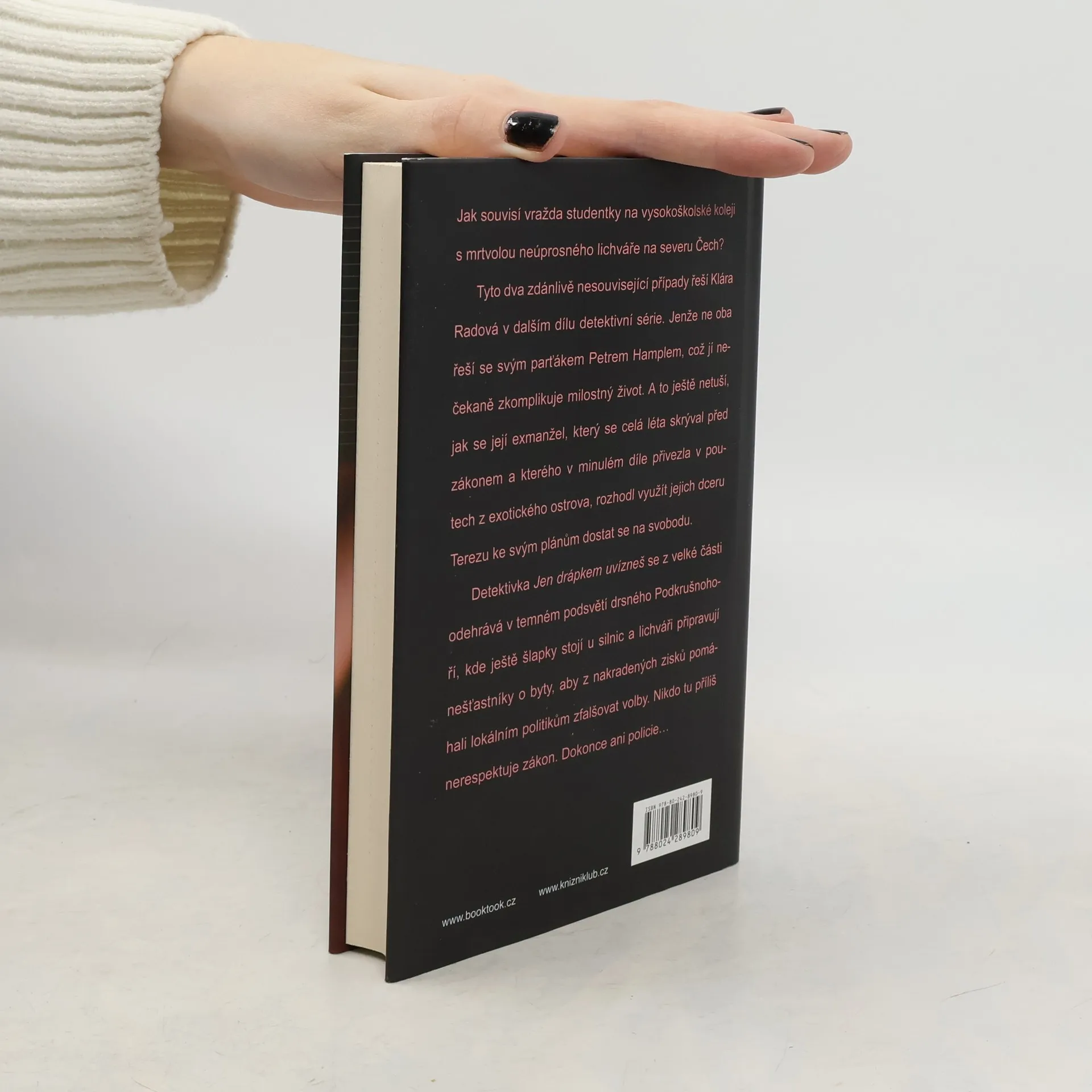 Jak souvisí vražda studentky na vysokoškolské koleji s mrtvolou neúprosného lichváře na severu Čech? Tyto dva zdánlivě nesouvisející případy řeší Klára Radová v dalším dílu detektivní série. Jenže ne oba řeší se svým parťákem Petrem Hamplem, což jí nečekaně zkomplikuje milostný život. A to ještě netuší, jak se její exmanžel, který se celá léta skrýval před zákonem a kterého v minulém díle přivezla v poutech z exotického ostrova, rozhodl využít společnou dceru Terezu ke svým plánům dostat se na svobodu. Detektivka Jen drápkem uvízneš se z velké části odehrává v temném podsvětí drsného Podkrušnohoří, kde ještě šlapky stojí u silnic a lichváři připravují nešťastníky o byty, aby z nakradených zisků pomáhali lokálním politikům zfalšovat volby. Nikdo tu moc nerespektuje zákon. Dokonce ani policie…