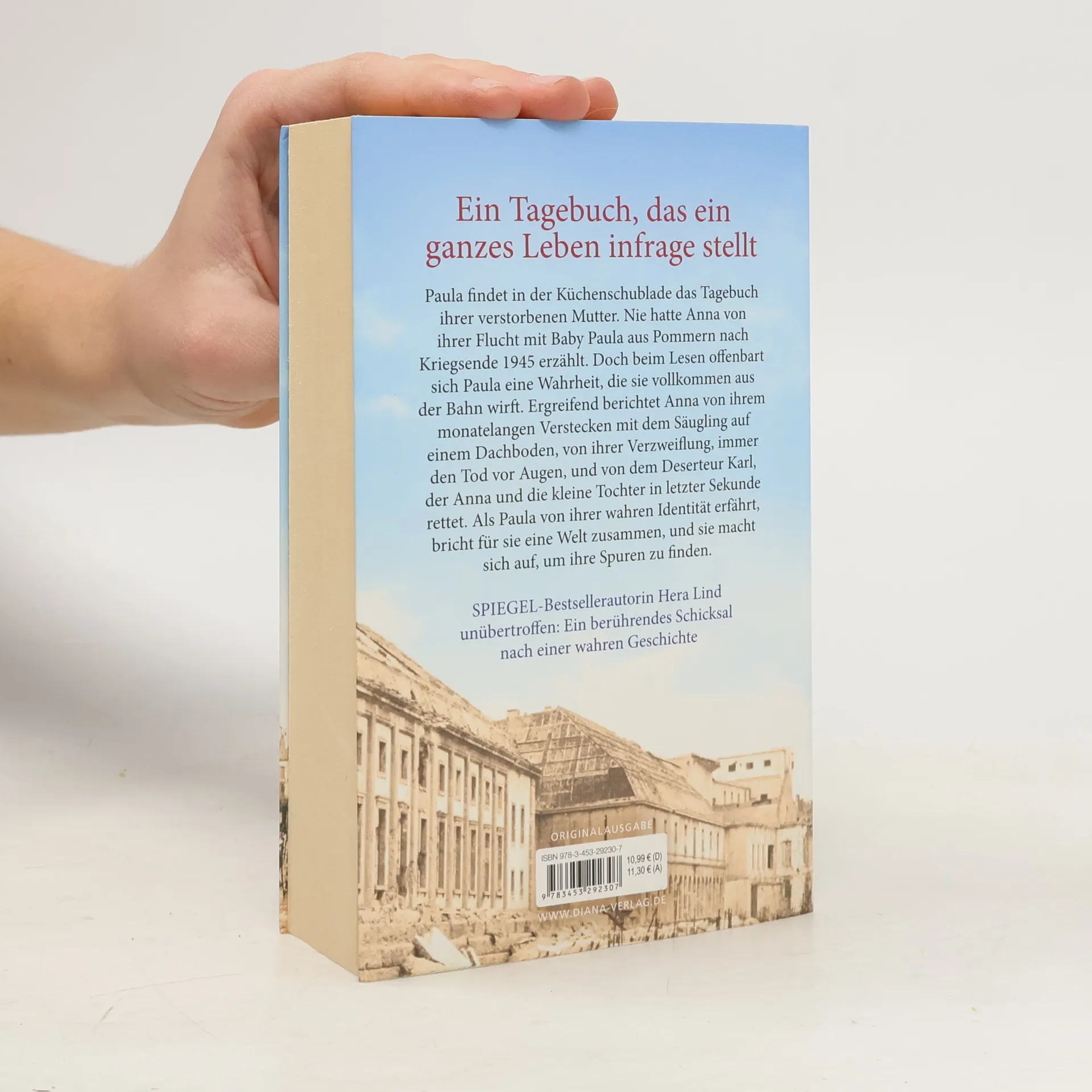 Paula findet in einer Küchenschublade das Tagebuch ihrer verstorbenen Mutter. Nie hatte Anna von ihrer Flucht mit Baby Paula aus Pommern nach Kriegsende 1945 erzählt. Doch beim Lesen offenbart sich Paula eine Wahrheit, die sie vollkommen aus der Bahn wirft. Ergreifend berichtet Anna von ihrem monatelangen Verstecken mit dem Säugling auf einem Dachboden, von ihrer Verzweiflung, immer den Tod vor Augen, und von dem Deserteur Karl, der Anna und die kleine Tochter in letzter Sekunde rettet. Als Paula von ihrer wahren Identität erfährt, bricht für sie eine Welt zusammen, und sie macht sich auf, um ihre Spuren zu finden.