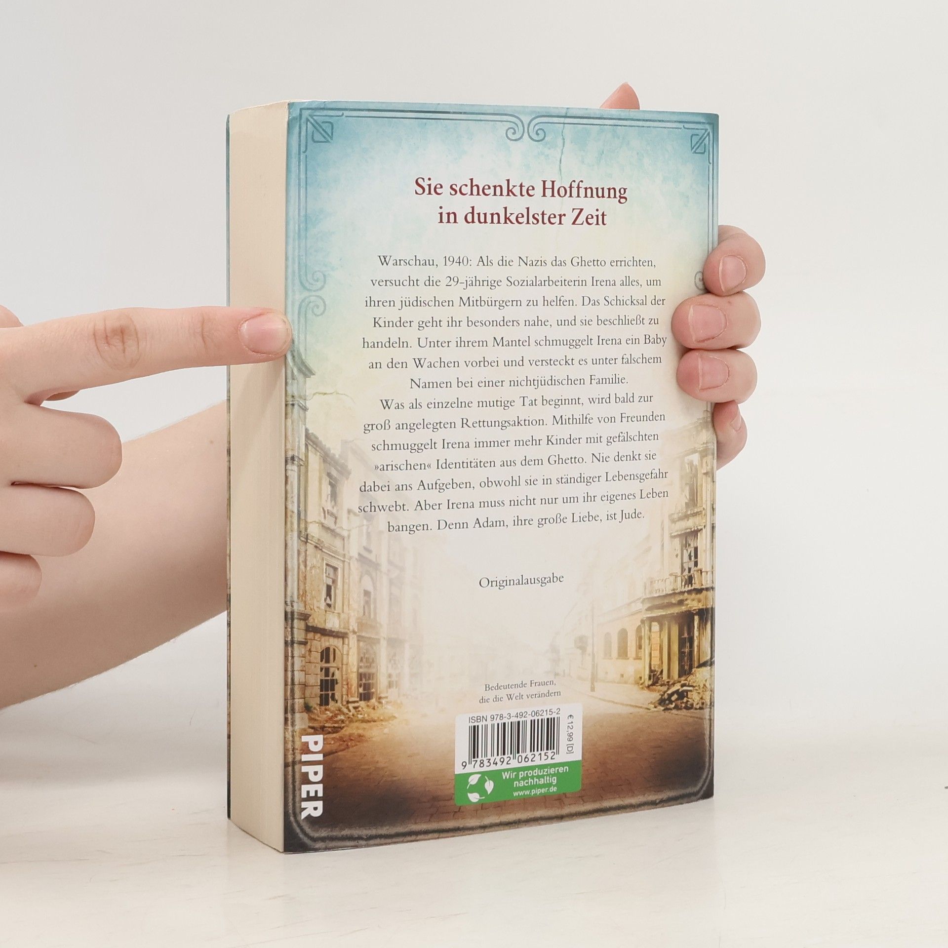 Die Geschichte des »weiblichen Oskar Schindler« Warschau, 1940: Die Nazis errichten das Ghetto. Die 29-jährige Sozialarbeiterin Irena versucht alles, um den jüdischen Menschen zu helfen. Sie versteckt ein kleines, von verzweifelten Eltern ausgesetztes Mädchen unter falschem Namen bei einer nicht-jüdischen Familie. Was als mutige Tat beginnt, wird zur groß angelegten Rettungsaktion. Irena schmuggelt immer mehr Kinder mit gefälschten »arischen« Identitäten aus dem Ghetto. Sie denkt nie ans Aufgeben, obwohl sie in ständiger Lebensgefahr schwebt. Aber Irena muss nicht nur um ihr eigenes Leben bangen. Denn Adam, ihre große Liebe, ist Jude. In dunkelster Zeit schenkte sie Hoffnung Historischer Hintergrund: Irena Sendler (1910-2008) rettete 2.500 jüdische Kinder vor dem sicheren Tod, indem sie sie aus dem Ghetto schmuggelte. Sie hoffte, die Kinder nach dem Krieg ihren Eltern zurückgeben zu können. Selbst als die Gestapo Irena Sendler unter Folter verhörte, soll »Die Mutter der Holocaust-Kinder« keine Informationen preisgegeben haben. 1965 würdigte Yad Vashem Irena Sendler als »Gerechte unter den Völkern«.