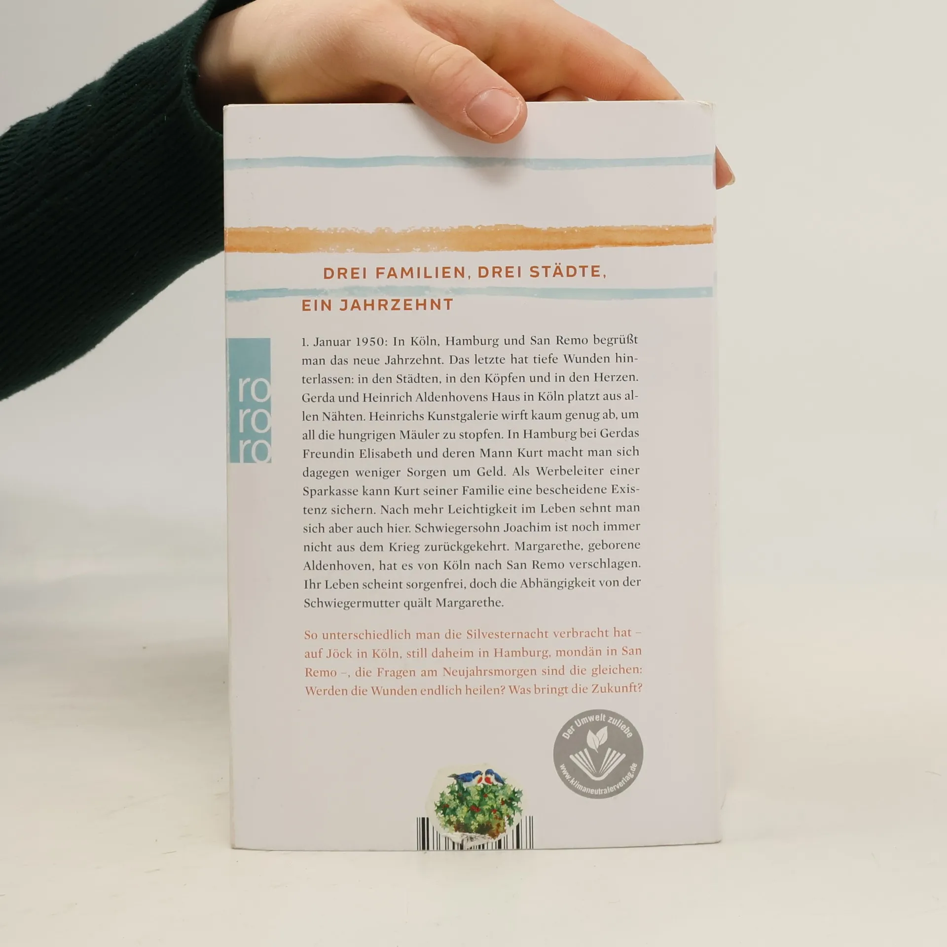 Der Auftakt der neuen zweibändigen Saga von Bestsellerautorin Carmen Korn entführt uns in die Nachkriegsjahre. Am 1. Januar 1950 begrüßen drei Familien in Köln, Hamburg und San Remo das neue Jahrzehnt, das von den Wunden der Vergangenheit geprägt ist. In Köln lebt das Ehepaar Gerda und Heinrich Aldenhoven, deren Kunstgalerie nicht genug einbringt, um die Familie zu ernähren. In Hamburg hingegen hat Gerdas Freundin Elisabeth mit ihrem Mann Kurt eine bescheidene Existenz, doch auch sie sehnt sich nach mehr Leichtigkeit im Leben, besonders da Schwiegersohn Joachim noch immer im Krieg vermisst wird. Margarethe, die von Köln nach San Remo gezogen ist, scheint ein sorgenfreies Leben an der Seite ihres italienischen Mannes zu führen, leidet jedoch unter der Abhängigkeit von ihrer Schwiegermutter. Trotz der unterschiedlichen Silvesternächte – feierlich in Köln, still in Hamburg, mondän in San Remo – stellen sich alle am Neujahrsmorgen die gleichen Fragen: Werden die Wunden heilen? Was bringt die Zukunft? Carmen Korn lässt uns in die Herausforderungen und Hoffnungen dieser Zeit eintauchen, erzählt von Neuanfängen, gemeinsamen Festen und dem Bestreben, aus dem Schweren etwas Gutes zu schaffen.