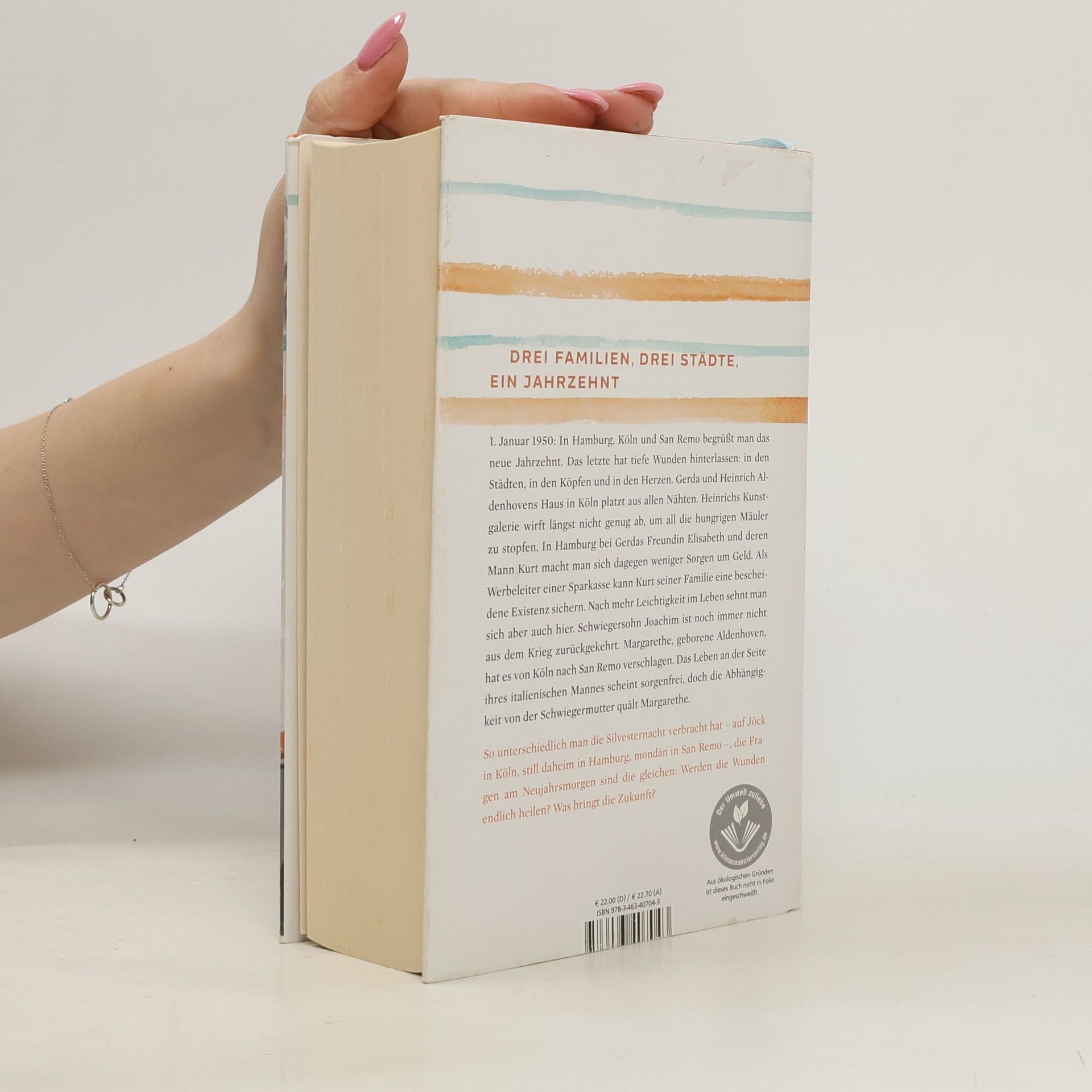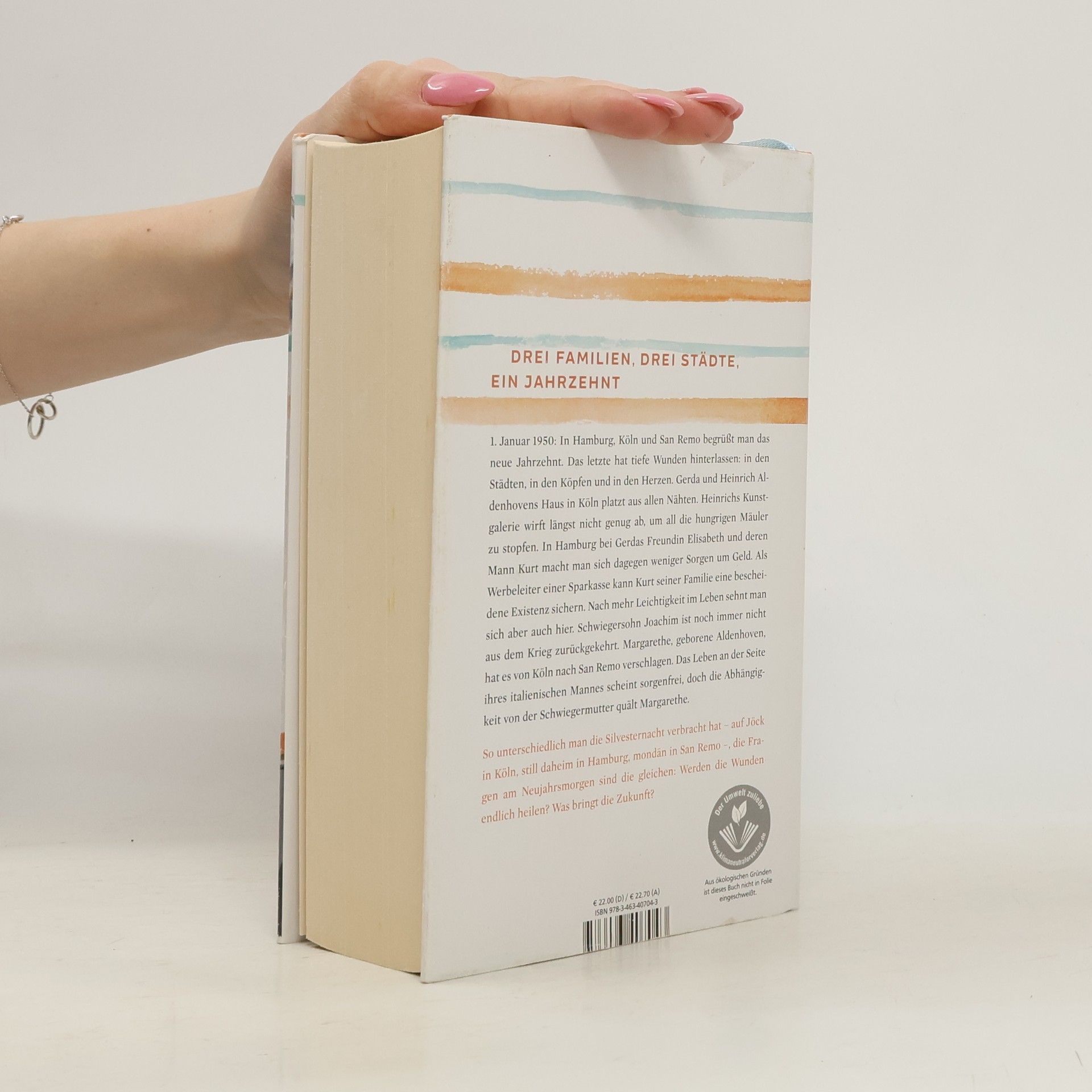 Der Auftakt der neuen zweibändigen Saga von Bestsellerautorin Carmen Korn entführt uns in das Jahr 1950, wo drei Familien in Köln, Hamburg und San Remo das neue Jahrzehnt beginnen. Die Narben der Vergangenheit sind in den Städten und den Herzen der Menschen spürbar. In Köln kämpft das Ehepaar Gerda und Heinrich Aldenhoven mit finanziellen Schwierigkeiten, da Heinrichs Kunstgalerie nicht genug einbringt, um die Familie zu ernähren. In Hamburg hingegen lebt Gerdas Freundin Elisabeth mit ihrem Mann Kurt ein bescheidenes, aber sorgenfreieres Leben, während sie auf die Rückkehr von Schwiegersohn Joachim aus dem Krieg hoffen. Margarethe, die von Köln nach San Remo gezogen ist, scheint ein sorgenfreies Leben an der Seite ihres italienischen Mannes zu führen, doch die Abhängigkeit von ihrer Schwiegermutter belastet sie. Trotz der unterschiedlichen Silvesterfeiern in den drei Städten stellen sich alle Familien am Neujahrsmorgen die gleichen Fragen: Werden die Wunden heilen? Was bringt die Zukunft? Carmen Korn lässt uns in die Nachkriegsjahrzehnte eintauchen und erzählt von Neuanfängen, gemeinsamen Festen und den Herausforderungen des Lebens, während die Hoffnung auf Glück und eine bessere Zukunft stets präsent bleibt.