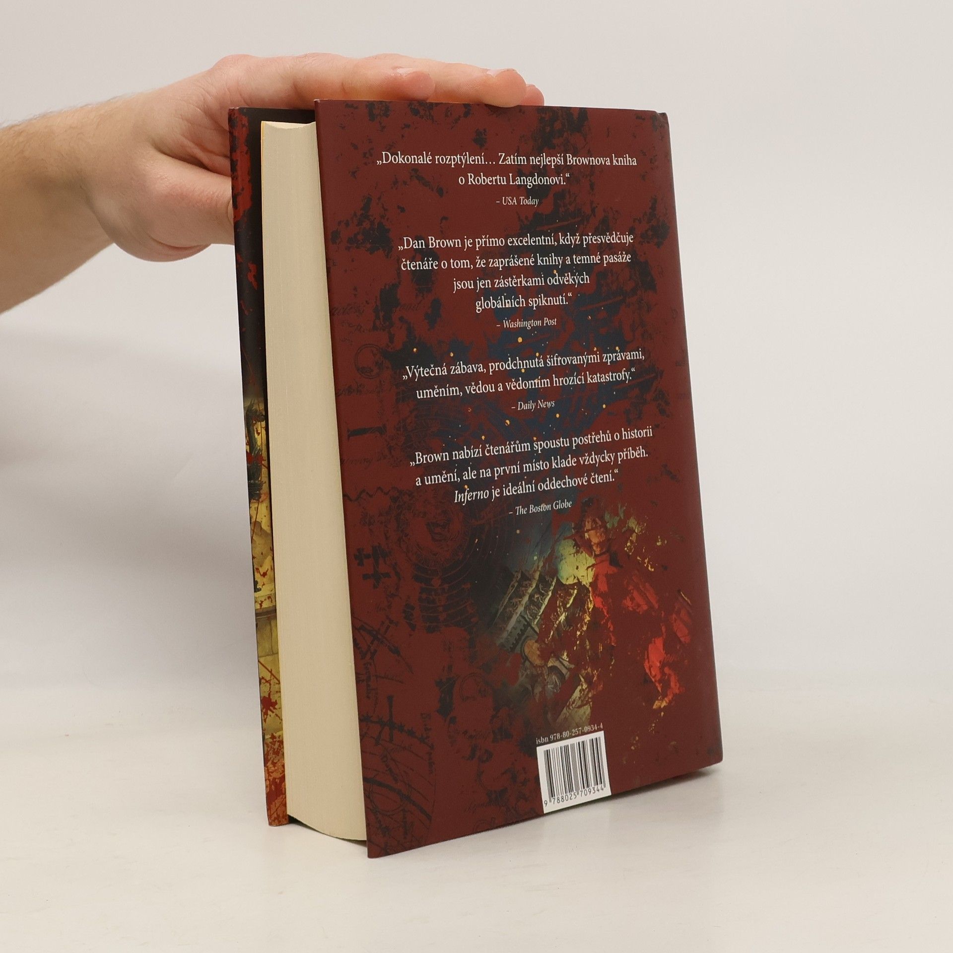 Dan Brown se vrací novým thrillerem Inferno, který je pokračováním světových bestsellerů Šifra mistra Leonarda, Andělé a démoni a Ztracený symbol. Ve svých románech Dan Brown mistrně spojuje nejzajímavější záhady historie umění s po věky fascinujícími symboly a šiframi. Robert Langdon se tentokráte ocitá v srdci Itálie, kde studuje mnoha záhadami a tajemstvími opředený rukopis – Danteho Peklo (Inferno). Musí se postavit tváří v tvář soupeři, který ho zavede do světa klasického umění, tajných chodeb a futuristických zbraní. Klíč k nezodpovězeným otázkám je skryt mezi řádky Danteho pekla a Langdon se opět vrhá do boje s časem, aby odvrátil zkázu, která světu hrozí.