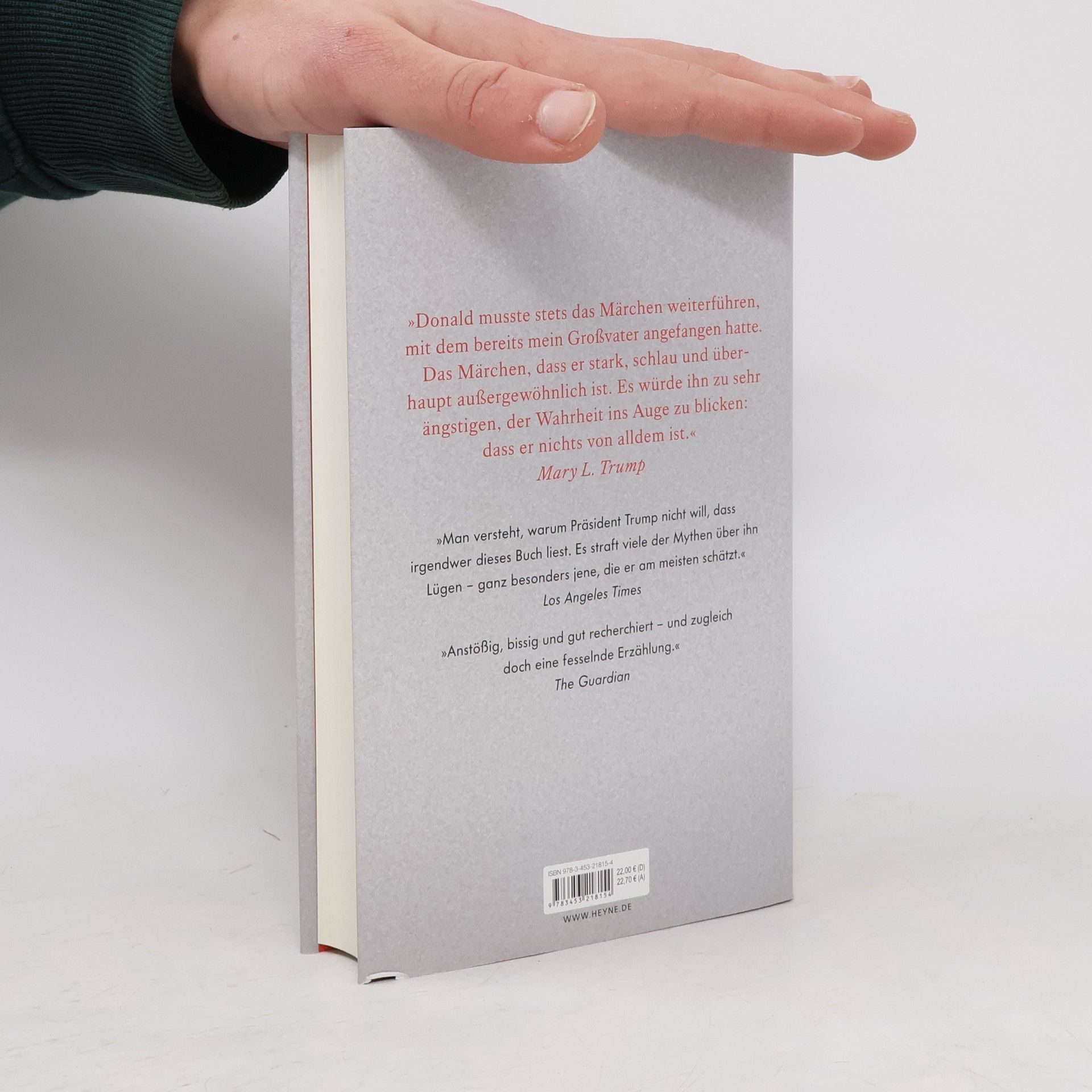 Das wahre Gesicht von Donald Trump – intime Details aus der Familiengeschichte des US-Präsidenten Mary L. Trump, Nichte des US-Präsidenten und promovierte klinische Psychologin, enthüllt die dunkle Seite der Familie Trump. Einen Großteil ihrer Kindheit verbrachte Mary im Hause ihrer Großeltern in New York, wo auch Donald und seine vier Geschwister aufwuchsen. Sie schildert, wie Donald Trump in einer Atmosphäre heranwuchs, die ihn für sein Leben zeichnete und ihn letztlich zu einer Bedrohung für das Wohlergehen und die Sicherheit der ganzen Welt machte.Als einziges Familienmitglied ist Mary Trump dazu bereit, aus eigener Anschauung die Wahrheit über eine der mächtigsten Familien der Welt zu erzählen. Ihre Insiderperspektive in Verbindung mit ihrer fachlichen Ausbildung ermöglicht einen absolut einmaligen Einblick in die Psyche des unberechenbarsten Mannes, der je an der Spitze einer Weltmacht stand. »Anstößig, bissig und gut recherchiert – und zugleich doch eine fesselnde Erzählung.« —The Guardian »Nach vielen, vielen Trump-Büchern ist dieses tatsächlich unentbehrlich.« — Vanity Fair