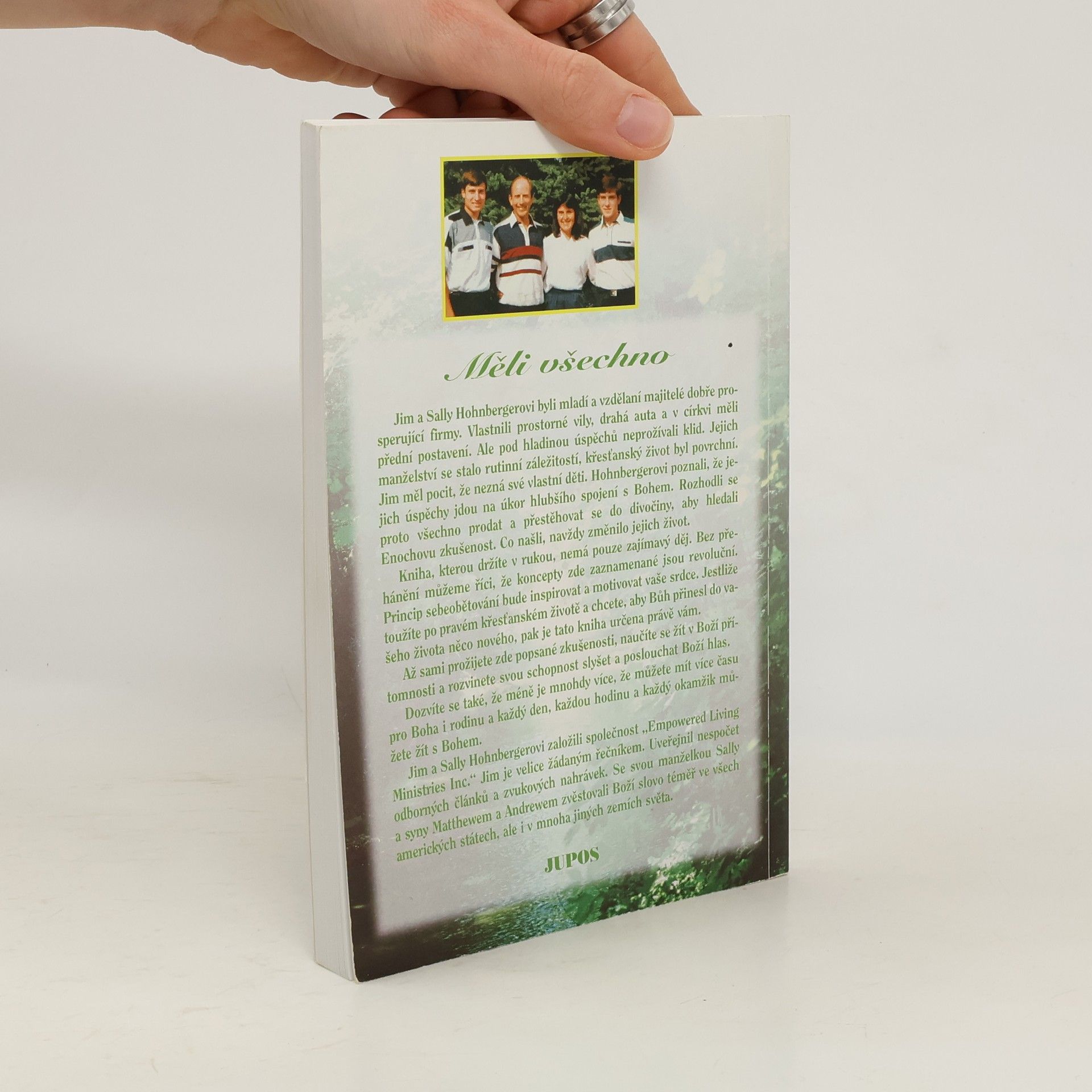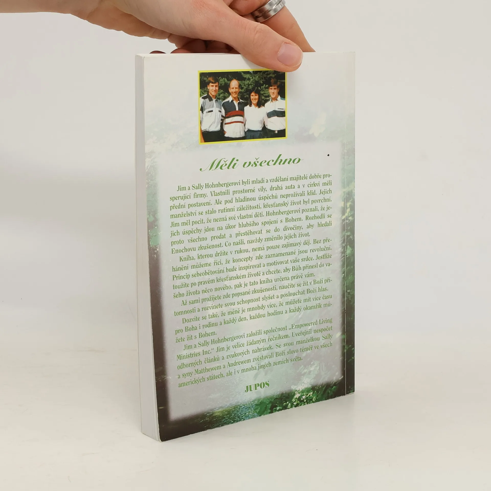 Jim a Sally Hohnbergerovi byli mladí a vzdělaní majitelé prosperující firmy, žijící v luxusu, ale pod povrchem úspěchů trpěli. Jejich manželství se stalo rutinním a křesťanský život povrchním. Jim cítil, že nezná své děti, a Hohnbergerovi si uvědomili, že jejich úspěchy brání hlubšímu spojení s Bohem. Rozhodli se pro radikální změnu – prodali vše a přestěhovali se do divočiny, aby hledali Enochovu zkušenost. To, co objevili, navždy změnilo jejich život. Tato kniha nabízí nejen zajímavý děj, ale také revoluční koncepty. Princip sebeobětování inspiruje a motivuje. Pokud toužíte po pravém křesťanském životě a chcete, aby Bůh přinesl do vašeho života něco nového, je tato kniha určena právě vám. Prožití zde popsaných zkušeností vám pomůže žít v Boží přítomnosti a rozvinout schopnost slyšet a poslouchat Boží hlas. Zjistíte, že méně může být více, že můžete mít více času pro Boha a rodinu, a že každý den, každou hodinu a každý okamžik můžete žít s Bohem. Jim a Sally založili „Empowered Living Ministries Inc.“ Jim je vyhledávaným řečníkem a autorem odborných článků a zvukových nahrávek. Společně s rodinou šíří Boží slovo po celé Americe a v mnoha dalších zemích.