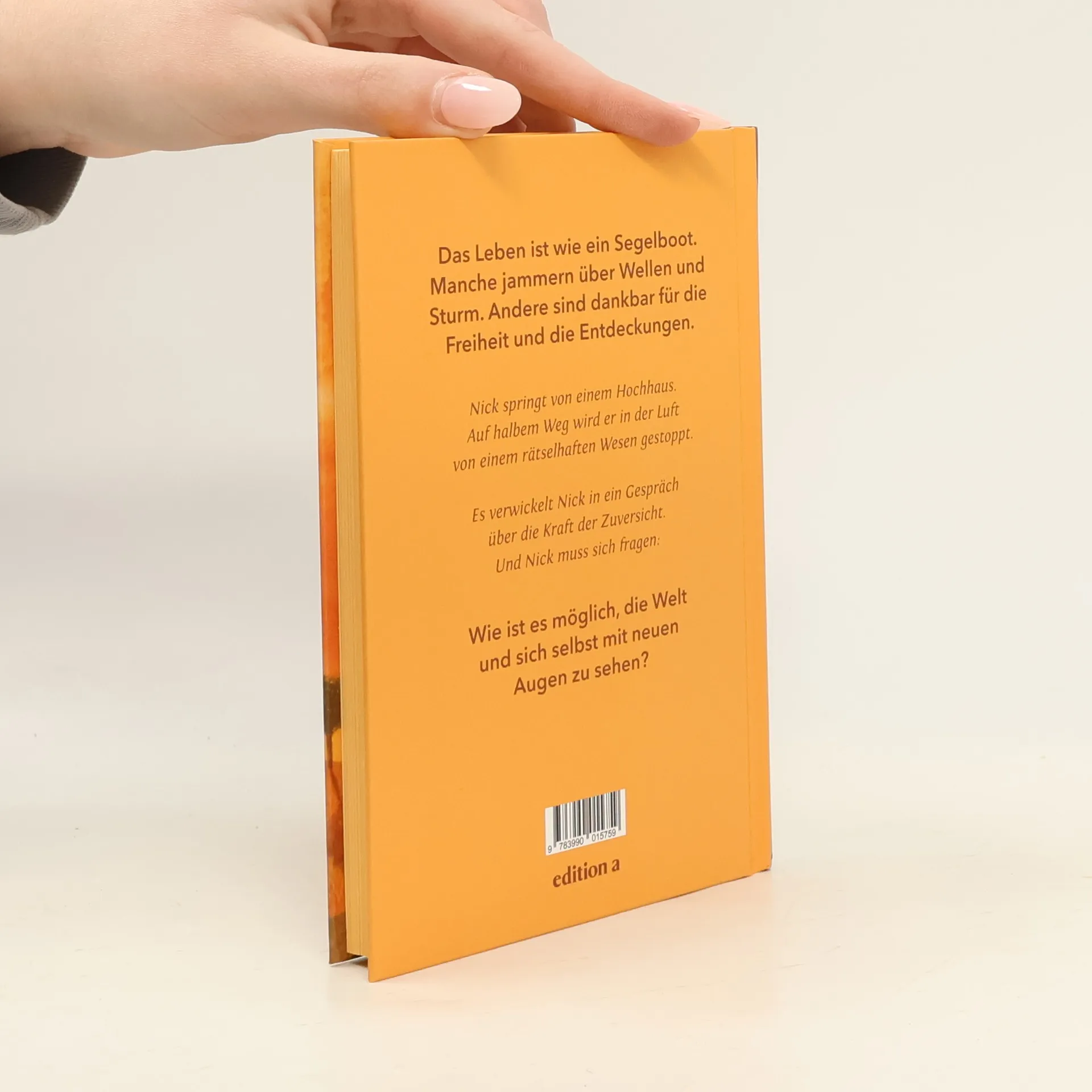 Das Leben ist wie ein Segelboot. Manche jammern über Wellen und Sturm. Andere sind dankbar für die Freiheit und die Entdeckungen. Nick springt von einem Hochhaus. Auf halbem Weg wird er in der Luft von einem rätselhaften Wesen gestoppt. Es verwickelt Nick in ein Gespräch über die Kraft der Zuversicht. Und Nick muss sich fragen: Wie ist es möglich, die Welt und sich selbst mit neuen Augen zu sehen?