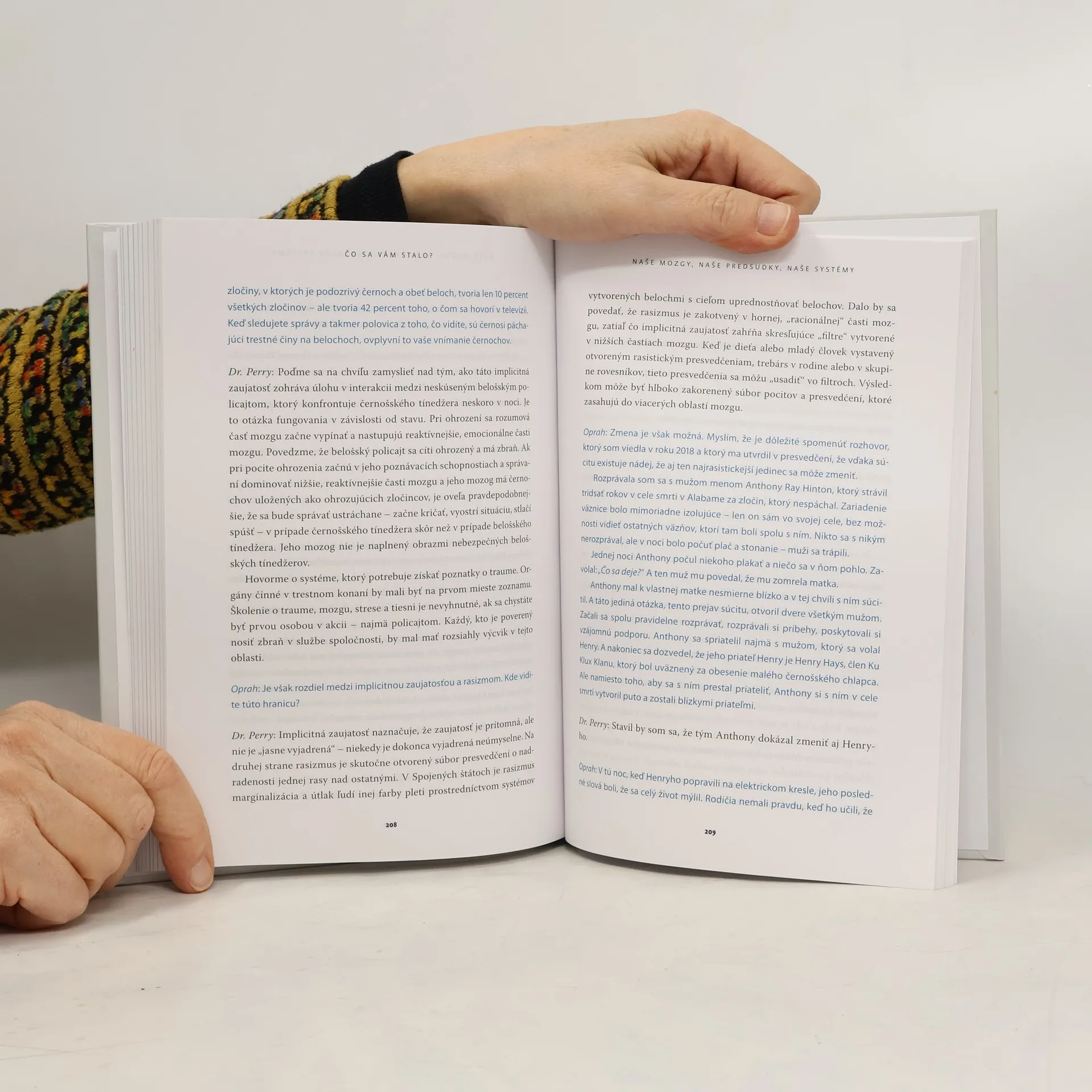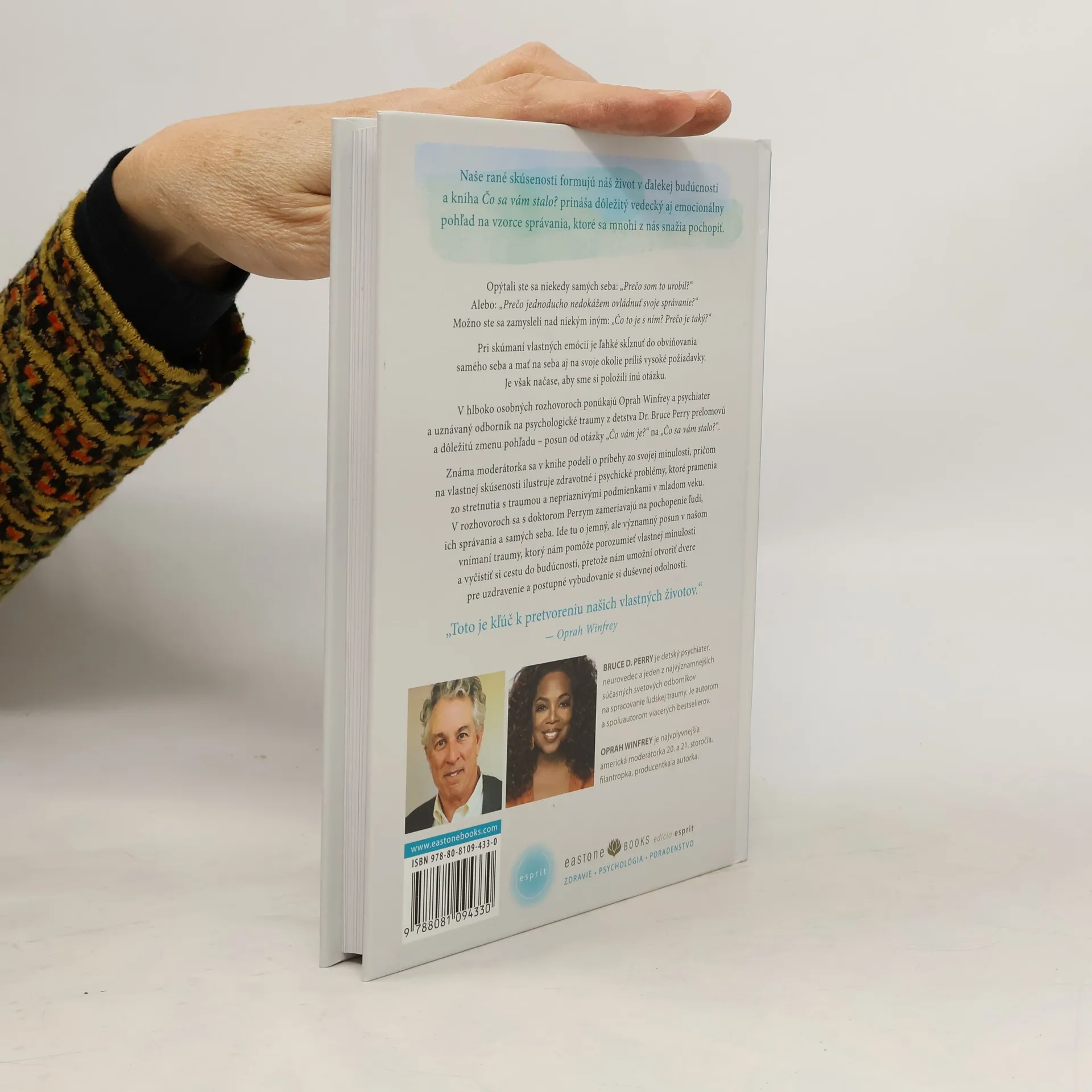Opýtali ste sa niekedy samých seba: „Prečo som to urobil?“ Alebo: „Prečo jednoducho nedokážem ovládnuť svoje správanie?“ Možno ste sa zamysleli nad niekým iným: „Čo to je s ním? Prečo je taký?“Pri skúmaní vlastných emócií je ľahké skĺznuť do obviňovania samého seba a mať na seba aj na svoje okolie príliš vysoké požiadavky. Je však načase, aby sme si položili inú otázku. V hlboko osobných rozhovoroch ponúkajú Oprah Winfrey a psychiater a uznávaný odborník na psychologické traumy z detstva Dr. Bruce Perry prelomovú a dôležitú zmenu pohľadu – posun od otázky „Čo vám je?“ na „Čo sa vám stalo?“.Známa moderátorka sa v knihe podelí o príbehy zo svojej minulosti, pričom na vlastnej skúsenosti ilustruje zdravotné i psychické problémy, ktoré pramenia zo stretnutia s traumou a nepriaznivými podmienkami v mladom veku. V rozhovoroch sa s doktorom Perrym zameriavajú na pochopenie ľudí, ich správania a samých seba. Ide tu o jemný, ale významný posun v našom vnímaní traumy, ktorý nám pomôže porozumieť vlastnej minulosti a vyčistiť si cestu do budúcnosti, pretože nám umožní otvoriť dvere pre uzdravenie a postupné vybudovanie si duševnej odolnosti.