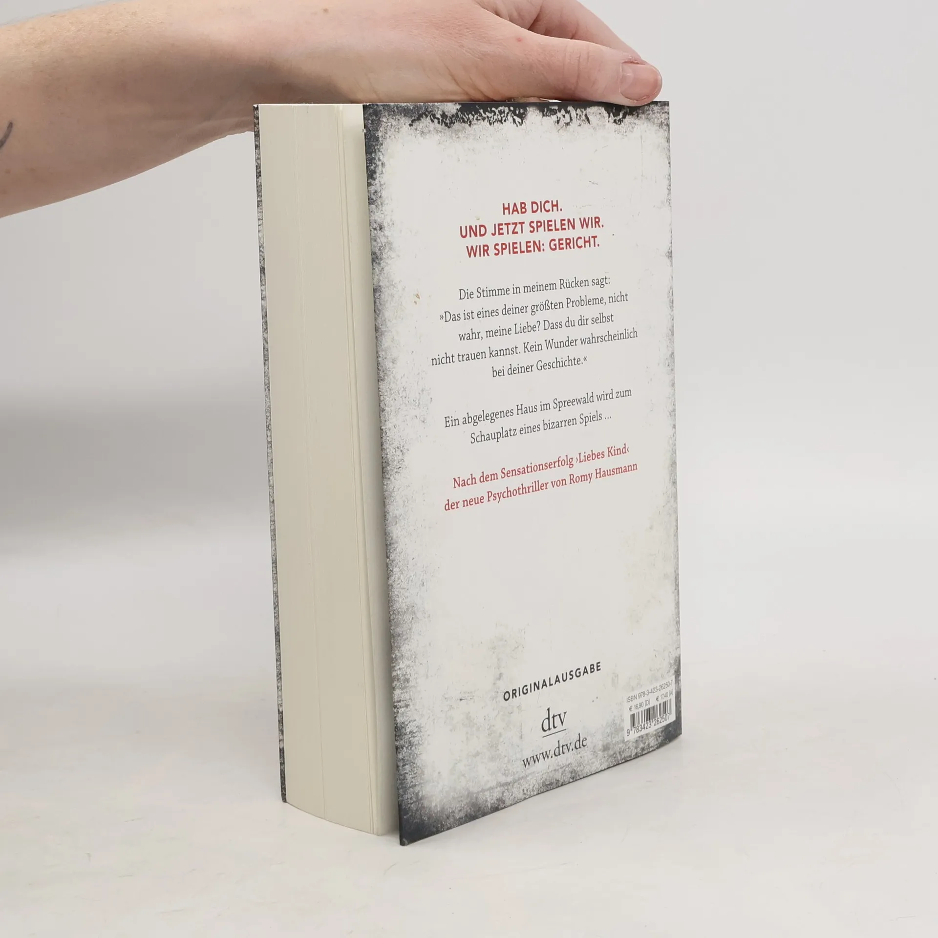 »Hab dich. Und jetzt spielen wir. Wir spielen: Gericht.« Es ist Jahre her, dass man Nadja für ein grausames Verbrechen verurteilt hat. Nach ihrer Haftentlassung wünscht sie sich nichts sehnlicher, als ein normales Leben zu führen. Doch dann geschieht ein Mord. Und der soll ungeschehen gemacht werden. Ein abgelegenes Haus wird zum Schauplatz eines bizarren Spiels ‒ denn Nadjas Vergangenheit macht sie zum perfekten Opfer. Und zur perfekten Mörderin ... Ein tief unter die Haut gehender Psychothriller über Schuld, Vergeltung und die Frage, ob ein Täter je wieder frei sein kann. »Romy Hausmann reüssiert auch mit ihrem zweiten Roman. Zweiter Treffer nach dem Thriller-Debüt: Mit ihrem Roman ‚Marta schläft‘ erobert Romy Hausmann aus dem Stand Platz 4 der SPIEGEL-Paperback-Belletristik. Lisa Starke, buchreport: SPIEGEL-Bestseller-Barometer, 29.4.2020