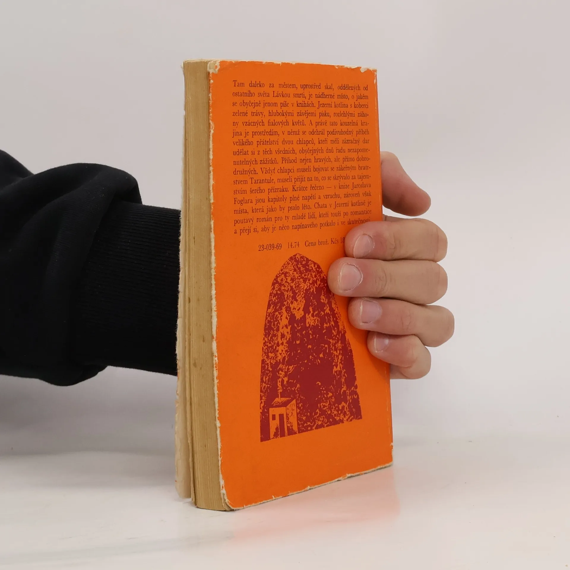 Tam daleko za městem, uprostřed skal, oddělených od ostatního světa Lávkou smrti, je nádherné místo, o jakém se obyčejně jenom píše v knihách. Jezerní kotlina s koberci zelené trávy, hlubokými závějemi písku, rozlehlými záhony vzácných fialových květů. A právě tato kouzelná krajinaje prostředím, v němž se odehrál podivuhodný příběh velikého přátelství dvou chlapců, kteří měli zázračný dar udělat si z těch všedních, obyčejných dnů řadu nezapomenutelných zážitků. Příhod nejen hravých, ale přímo dobrodružných. Vždyť chlapci museli bojovat se zákeřným bratrstvem Tarantule, museli přijít na to, co se skrývalo za tajemstvím šerého přízraku. Krátce řečeno — v knize Jaroslava Foglara jsou kapitoly plné napětí a vzruchu, zároveň však místa, která jako by psalo léto. Chata v Jezerní kotlině je poutavý román pro ty mladé lidi, kteří touží po romantice a přejí si, aby je něco napínavého potkalo i ve skutečnosti.