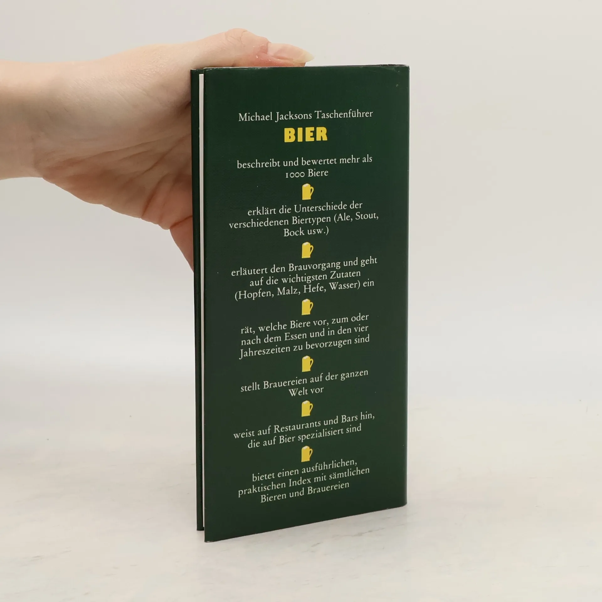 Woran erkenne ich ein edles Bier? Welches Bier trinkt man zu welchem Essen? Diese und viele andere Fragen beantwortet der international führende Bierexperte Michael Jackson in diesem reich illustrierten Band. Vom Münchner Hellen über indisches Ale bis zum irischen Stout – über 450 Biermarken aus aller Welt werden hier porträtiert. Mit Informationen zu Herstellung, Geschmack, Alkoholgehalt, Serviertemperatur sowie einem Aromalexikon.