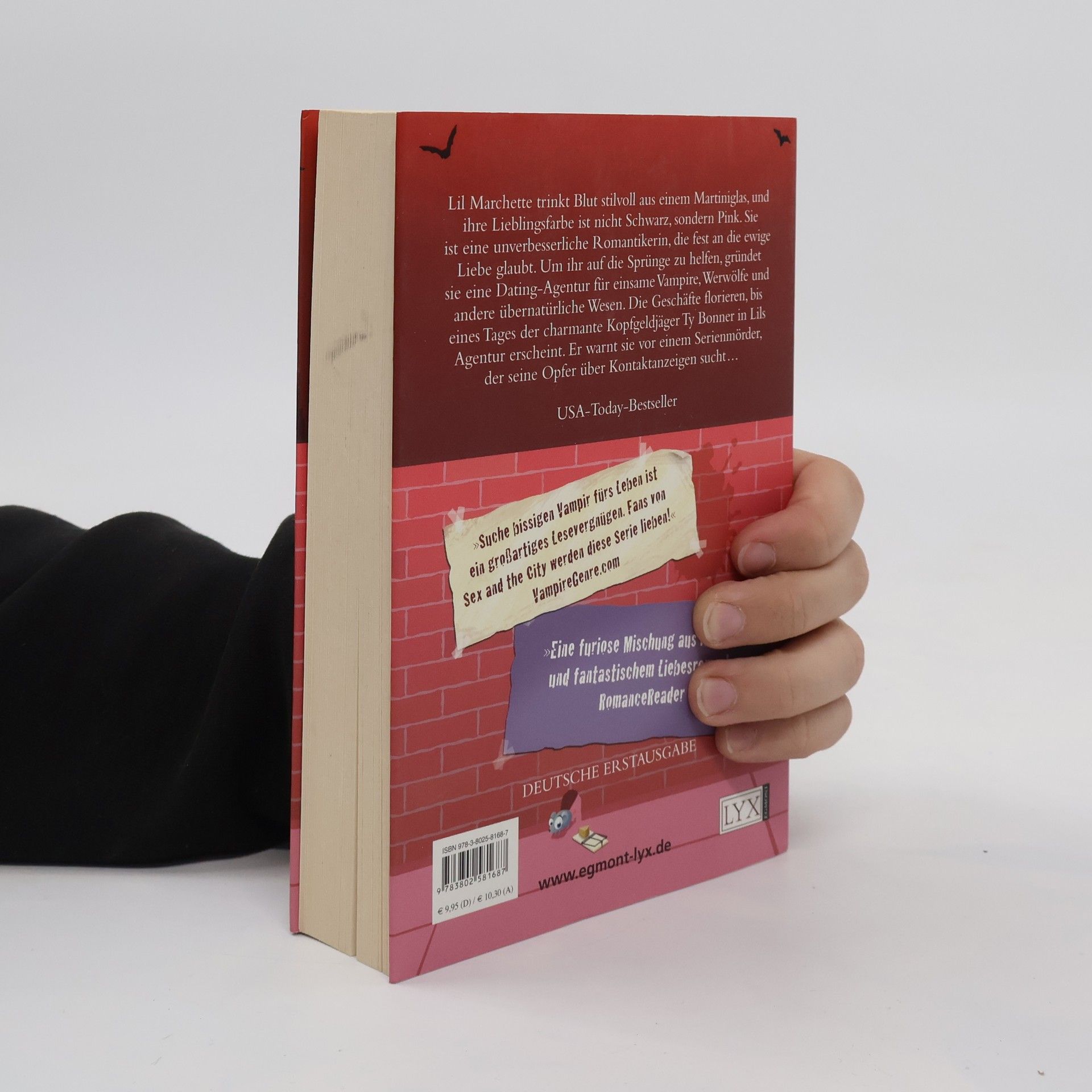 New York, Manhattan: Gräfin Lilliana Arabella Guinevere du Marchette, von ihren Freunden kurz Lil genannt, entstammt einer alten und respektablen Vampir-Familie. Um dem Drängen ihres Vaters zu entgehen, der sie am liebsten als Mitarbeiterin in seiner erfolgreichen Copyshop-Kette sehen möchte, beschließt Lil eine Dating-Agentur zu gründen. Doch ihre Klienten sind keine gewöhnlichen Sterblichen, sondern einsame Vampire, liebestolle Werwölfe und andere übernatürliche Wesen. Da kommt eines Tages der charmante Kopfgeldjäger Ty Bonner in Lils Agentur, um sie vor einem Kidnapper zu warnen, der Frauen über Kontaktanzeigen sucht. Ist womöglich einer von Lils Klienten der Täter? Auftakt der in den USA gefeierten Vampir-Serie. Absolut heiß, echt frech und hinreißend romantisch – Vampire and the City vom Feinsten! „Kimberly Rayes Helden sind nicht nur witzig, sondern auch sympathisch. Suche bissigen Vampir fürs Leben ist eine furiose Mischung auf Komödie und fantastischem Liebesroman.“ Romance Reader at Heart. com