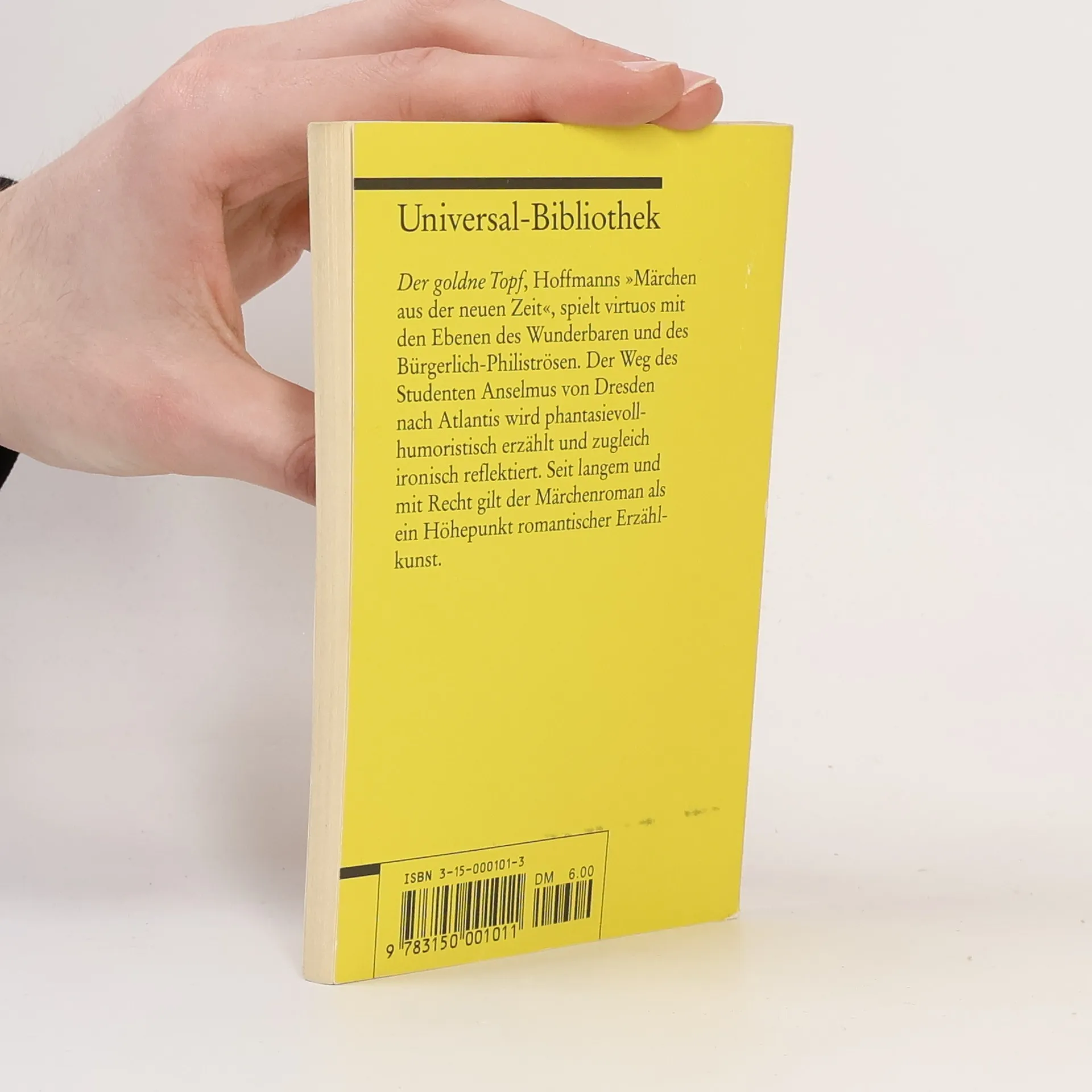 Der goldne Topf, Hoffmanns »Märchen aus der neuen Zeit«, spielt virtuos mit den Ebenen des Wunderbaren und des Bürgerlich-Philiströsen. Der Weg des Studenten Anselmus von Dresden nach Atlantis wird phantasievoll-humoristisch erzählt und zugleich ironisch reflektiert. Seit langem und mit Recht gilt der Märchenroman als ein Höhepunkt romantischer Erzählkunst.