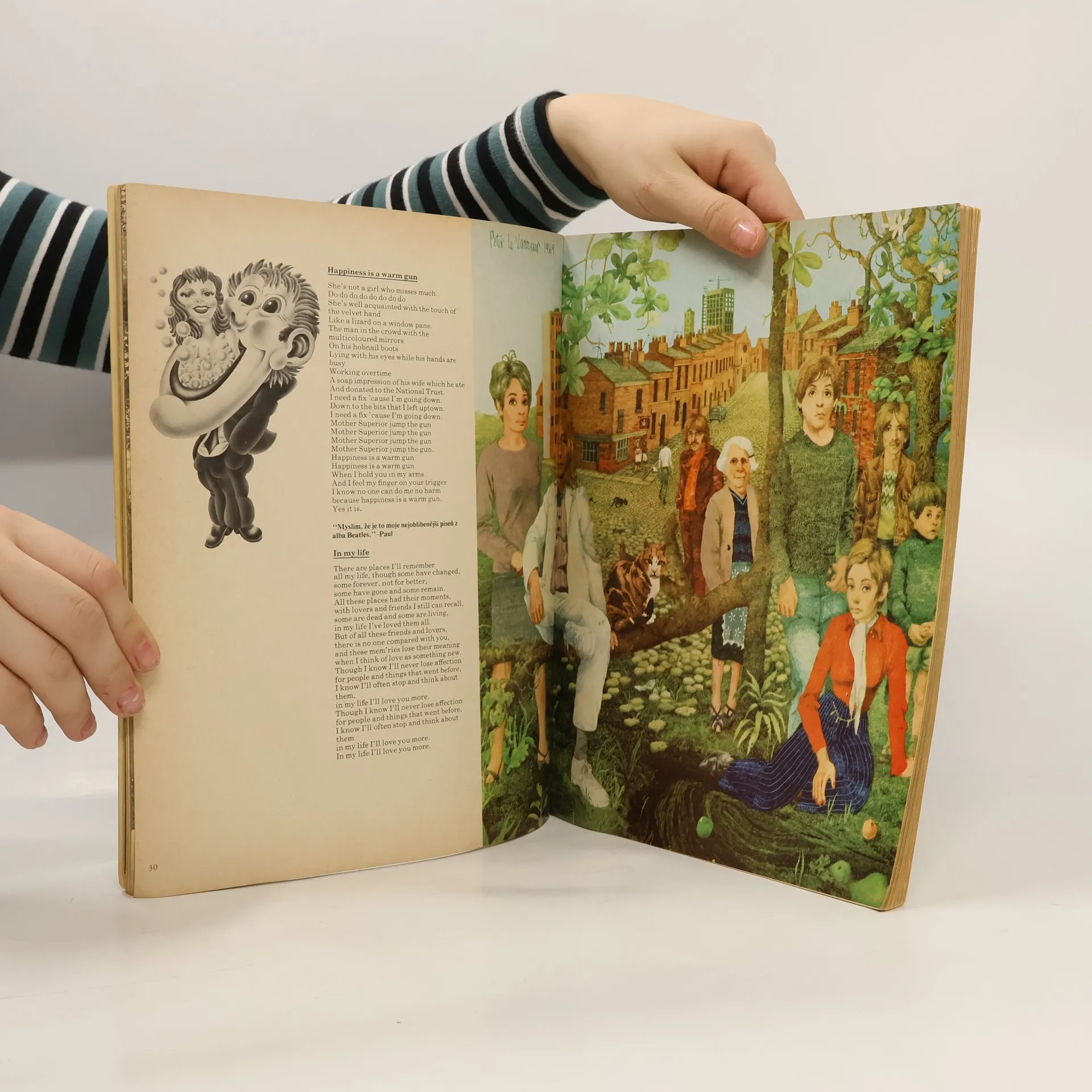 Tato kultovní kniha o hudební skupině The Beatles se stala v době svého prvního českého vydání v roce 1969 doslova biblí fanoušků této skupiny. Nejenom proto, že je souborem vybraných textů jejich písní ilustrovaných předními britskými výtvarníky, uměleckými fotografy i fanoušky, ale zejména proto, že se jejímu editorovi a zároveň výtvarníkovi Alanu Aldridgovi podařilo předložit čtenářům knihu, která byla pro oko a představivost stejně zábavná jako alba Beatles pro posluchače a která nebyla chápána jako pouhý výběr ilustrací k písním, ale byla ilustrací celých šedesátých let. Beatles zachytili svou hudbou tempo tehdejšího světa, je pravděpodobné, že i vás tato kniha v dnešní době dokáže oslovit, okouzlit a osvětlit přínos této legendární kapely ke stylu jedné generace.