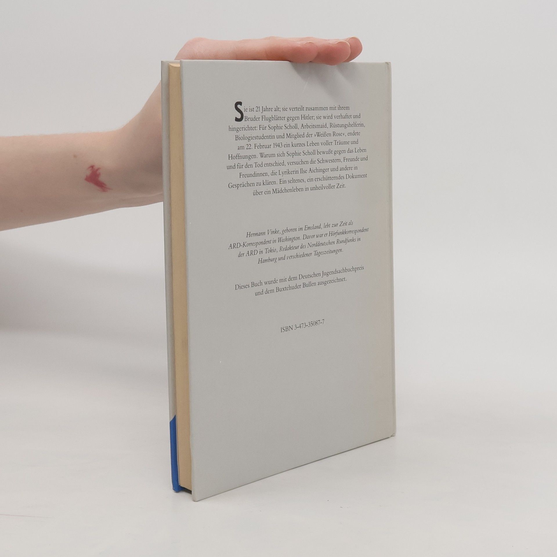 Am 22. Februar 1943 wurde die einundzwanzigjährige Sophie Scholl gemeinsam mit ihrem Bruder Hans und dem Mitstreiter Christoph Probst im Münchner Gefängnis Stadelheim hingerichtet. Sie war Mitglied der „Weißen Rose“, einer Studentengruppe, die mit Flugblättern zum Widerstand gegen Hitler aufgerufen hatte. Hermann Vinke beschreibt ihr Leben vor und während des Widerstands der „Weißen Rose“ in Form von Berichten, Dokumenten, Zeugenaussagen, Briefen und Fotos. Ein seltenes und erschütterndes Dokument über ein mutiges Mädchen in einer unheilvollen Zeit: Sophie Scholl interessierte sich kaum für politische Fragen, wurde aber aufgrund ihres nazikritischen Elternhauses trotzdem zur Widerstandskämpferin. In einer menschenfeindlichen Gesellschaft kämpfte sie mit großem Mut und Einsatz für ihre eigenen Ansichten und Ziele. Dadurch wurde sie zu einem unvergessenen Vorbild, auch für Jugendliche der heutigen Zeit. Hermann Vinke beschreibt das Leben dieser außergewöhnlichen jungen Frau, indem er ihre eigenen Aufzeichnungen mit Erinnerungen und Auszügen aus Briefen sowie dem historischen Hintergrund des Nationalsozialismus kombiniert.
