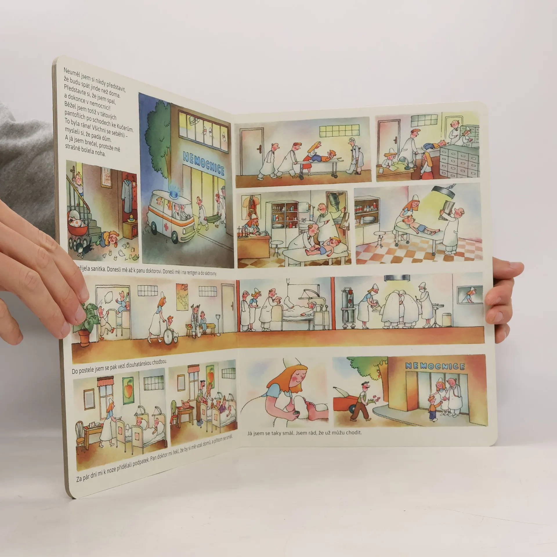 Dům je plný lidí a kolem něj je město plné zajímavých míst... Co všechno se tam během dne i v noci děje? To děti zjistí spolu s hlavním hrdinou příběhu, jeho malou sestřičkou a kamarádem Kubou: podívají se do školky, na pískoviště i do nemocnice. A dokonce pojedou vlakem k babičce na venkov a tam je teprve co k probádání! Bohatě ilustrované dvoustrany vybízejí ke zkoumání a objevování veselých detailů – s tímto leporelem je zkrátka legrace až na půdu.