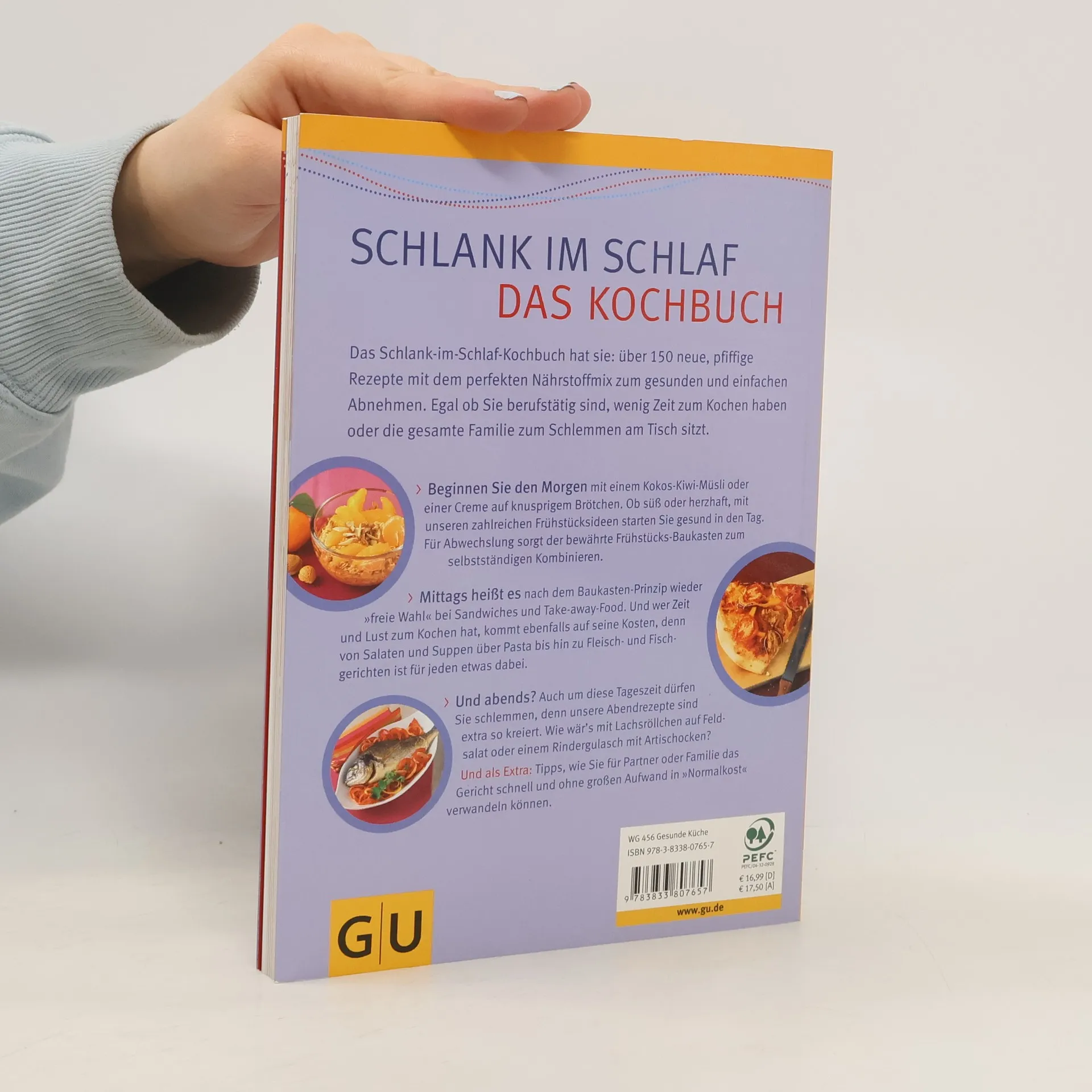 Sie leben nach diesem Prinzip und sind auf der Suche nach neuen Rezepten? Das Schlank-im-Schlaf-Kochbuch hat sie: Rezepte mit dem perfekten Nährstoffmix, zum gesunden und einfachen Abnehmen. Egal ob Sie berufstätig sind, wenig Zeit zum Kochen haben, oder die gesamte Familie zum Schlemmen am Tisch sitzt. Ob süss der herzhaft, mit unseren zahlreichen Frühstücksideen starten Sie gesund in den Tag. Für Abwechslung sorgt der bewährte Frühstücks-Baukasten zum selbstständigen Kombinieren. Mittags heißt es freie Wahl bei Sandwiches und Take-away-Food. Und wer Zeit und Lust zum Kochen hat, kommt ebenfalls auf seine Kosten, denn von Suppen über Eintöpfe bis hin zu Nudel-, Fleisch- und Fischgerichten, ist für jeden etwas dabei. Und auch abends dürfen Sie schlemmen. Wie wär's mit Rotbarsch auf Sellerie-Basilikum-Püree oder einem Rindergulasch mit Artischocken? Und als Extra: Tipps, wie Sie für Partner oder Familie das Gericht schnell und ohne großen Aufwand in „Normalkost“ verwandeln können.