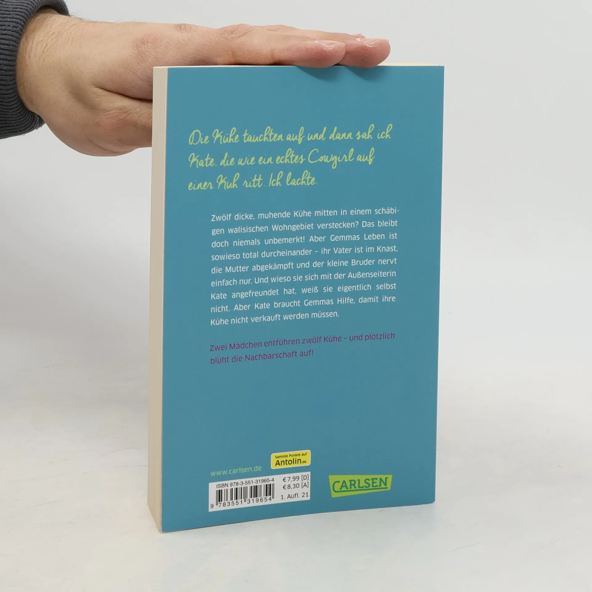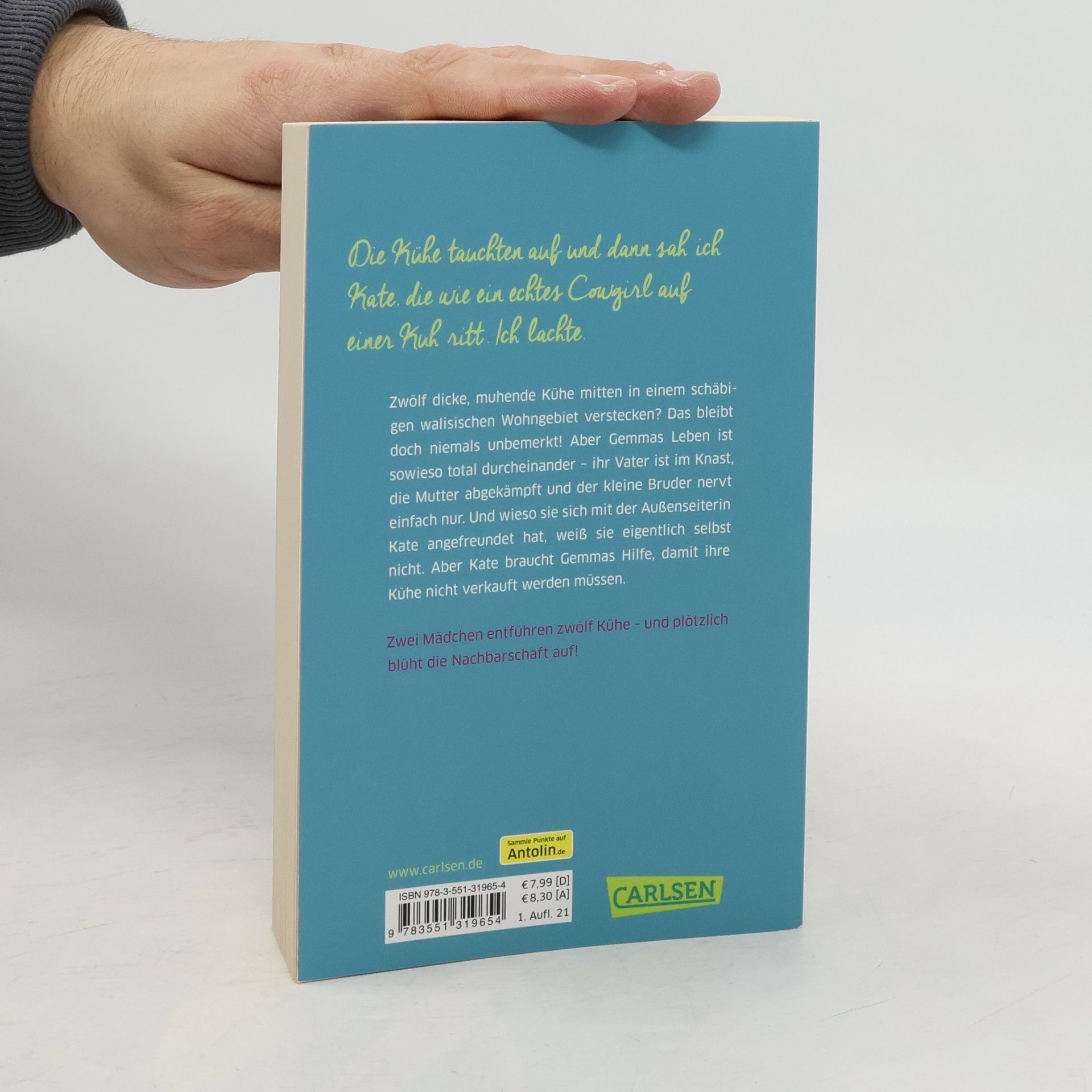 Eine ungewöhnliche Geschichte über Freundschaft und Zusammenhalt. Und jede Menge Kühe! Was soll Gemma bloß tun? Ausgerechnet die seltsame Kate braucht ihre Hilfe. Klar, sie und die Außenseiterin sind befreundet – auch wenn Gemma nicht recht weiß, wie das passiert ist. Aber zwölf dicke, muhende Kühe in einem schäbigen walisischen Wohngebiet verstecken? Das kann einfach nicht klappen. Egal, in Gemmas Leben herrscht sowieso totales Chaos: ihr Vater im Knast, ihre Mutter abgekämpft und ihr kleiner Bruder eine Nervensäge. Und ohne Gemmas Hilfe muss Kate die Kühe verkaufen. Gemma wird also dafür sorgen, dass ihre Nachbarn mitspielen. Kein Problem, oder? »Mit klarer Sprache und liebevollem Blick führt uns Gemin in eine nahezu unbekannte Welt.« kinderbuchexperten. wordpress. com