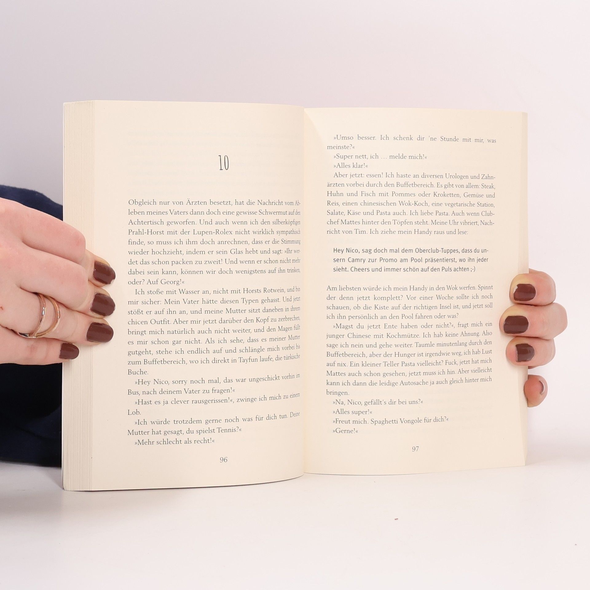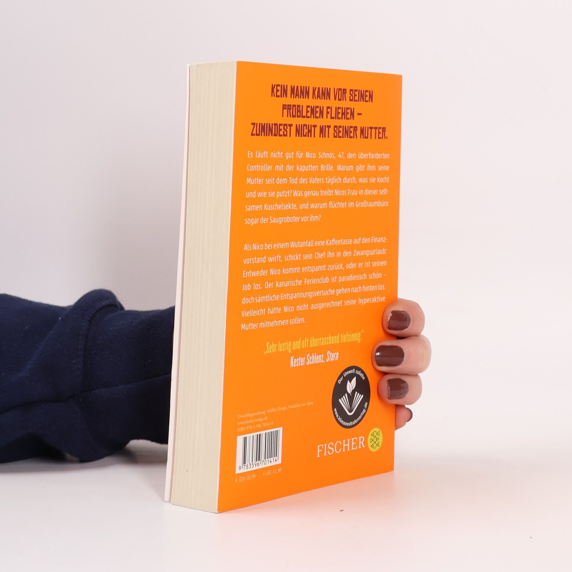 Kein Mann kann vor seinen Problemen fliehen – zumindest nicht mit seiner Mutter. Es läuft nicht gut für Nico Schnös, 47, den überforderten Controller mit der kaputten Brille. Warum gibt ihm seine Mutter seit dem Tod des Vaters täglich durch, was sie kocht und wie sie putzt? Was genau treibt Nicos Frau in dieser seltsamen Kuschelsekte, und warum flüchtet im Großraumbüro sogar der Saugroboter vor ihm? Als er bei einem Wutanfall eine Kaffeetasse auf den Finanzvorstand wirft, schickt sein Chef ihn in den Zwangsurlaub: Entweder Nico kommt entspannt zurück, oder er ist seinen Job los. Der kanarische Ferienclub ist paradiesisch schön – doch sämtliche Entspannungsversuche gehen nach hinten los. Vielleicht hätte Nico nicht ausgerechnet seine hyperaktive Mutter mitnehmen sollen: »Eine Zimmerkarte reicht, mein Sohn und ich machen eh alles zusammen!« Bald schon ahnt Nico: Paradies und Hölle können sehr nah beieinander liegen. Der Roman für alle, die schon mal mit ihren Eltern im Urlaub waren.