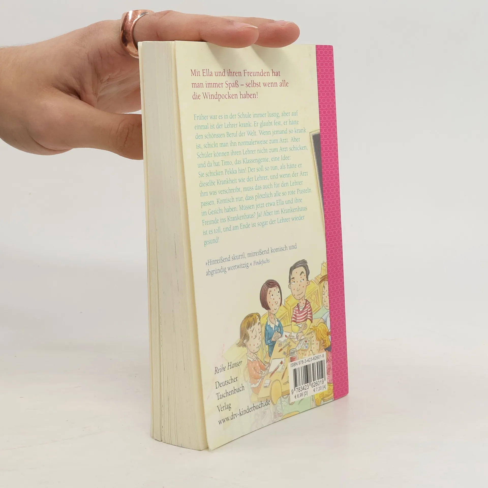 Ella und der Windpockenalarm! Früher war es in der Schule immer lustig, aber auf einmal ist der Lehrer krank: Er glaubt doch tatsächlich, den schönsten Beruf der Welt zu haben. Wenn jemand so krank ist, schickt man ihn normalerweise zum Arzt, aber Schüler können ihren Lehrer ja nicht zum Arzt beordern – und da hat Timo, das Klassengenie, eine Idee: Sie schicken Pekka hin! Der soll so tun, als hätte er dieselbe Krankheit, und wenn der Arzt ihm was verschreibt, muss das auch für den Lehrer passen. Doch anscheinend ist der Lehrer noch kränker, als Ella und ihre Freunde dachten.
