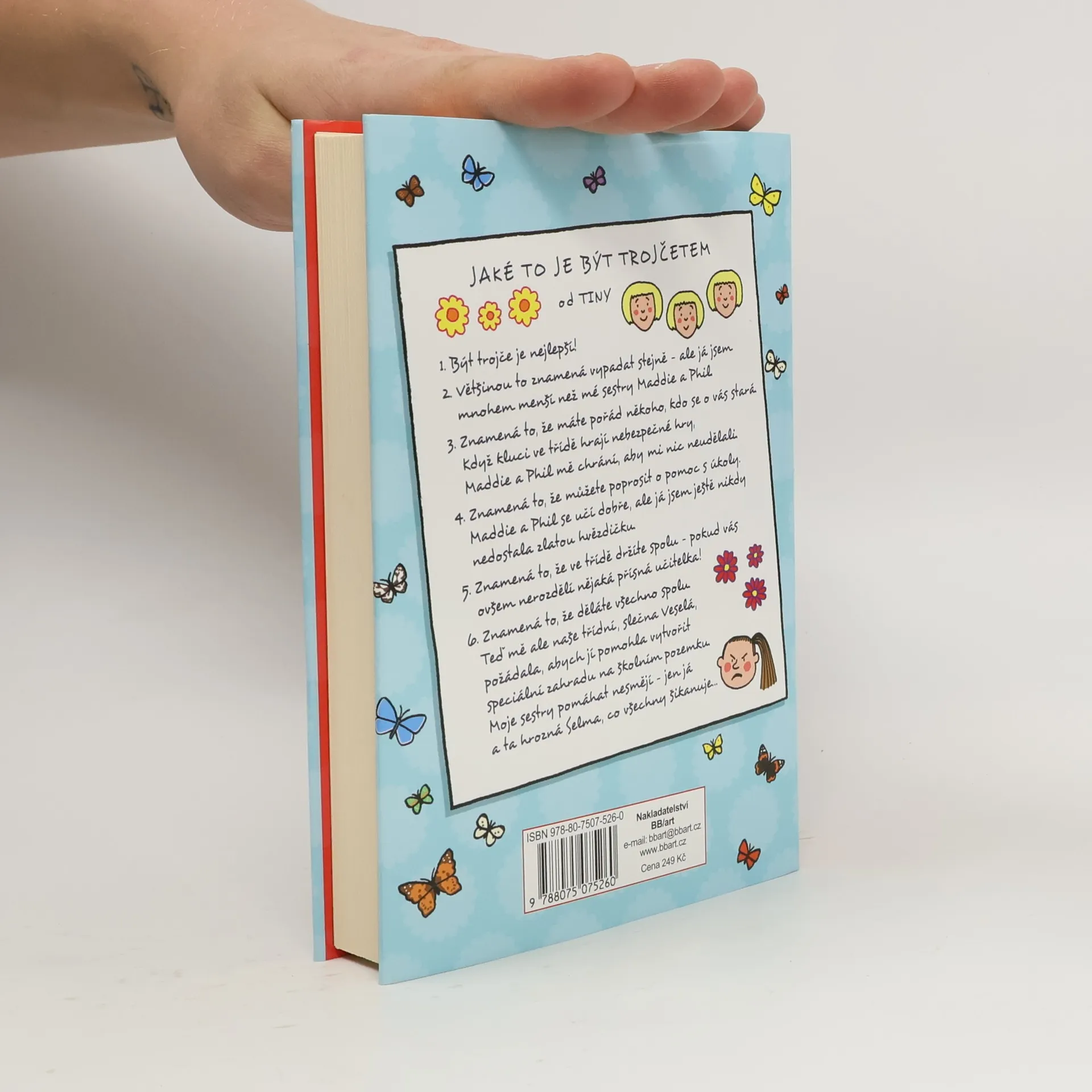 Tina, jako trojče, se od svých sester Phil a Maddie liší téměř ve všem, včetně toho, že v ničem není tak dobrá jako ony. Naštěstí se o Tinu starají a pomáhají jí, dokud je nová učitelka, slečna Veselá, neoddělí. Tina je zděšena, když ji posadí vedle zlé Selmy, ale brzy zjistí, že Selma je mnohem zajímavější, než se zdá. Být trojče znamená mít někoho, kdo se o vás stará, a Tina se spoléhá na Maddie a Phil, aby ji chránily před nebezpečnými hrami kluků ve třídě. Také to znamená, že může žádat o pomoc s úkoly, protože její sestry se učí dobře, zatímco ona nikdy nezískala zlatou hvězdičku. Když je však oddělena od svých sester, musí se postavit novým výzvám. Učitelka ji požádá, aby pomohla vytvořit speciální zahradu na školním pozemku, a to pouze s Selmou, která je známá svým šikanováním. Tento příběh o přátelství, důvěře a o tom, jak je někdy těžké být sám sebou, je určen čtenářkám ve věku od sedmi do devíti let a přináší poselství o překonávání překážek a objevování vlastních sil.