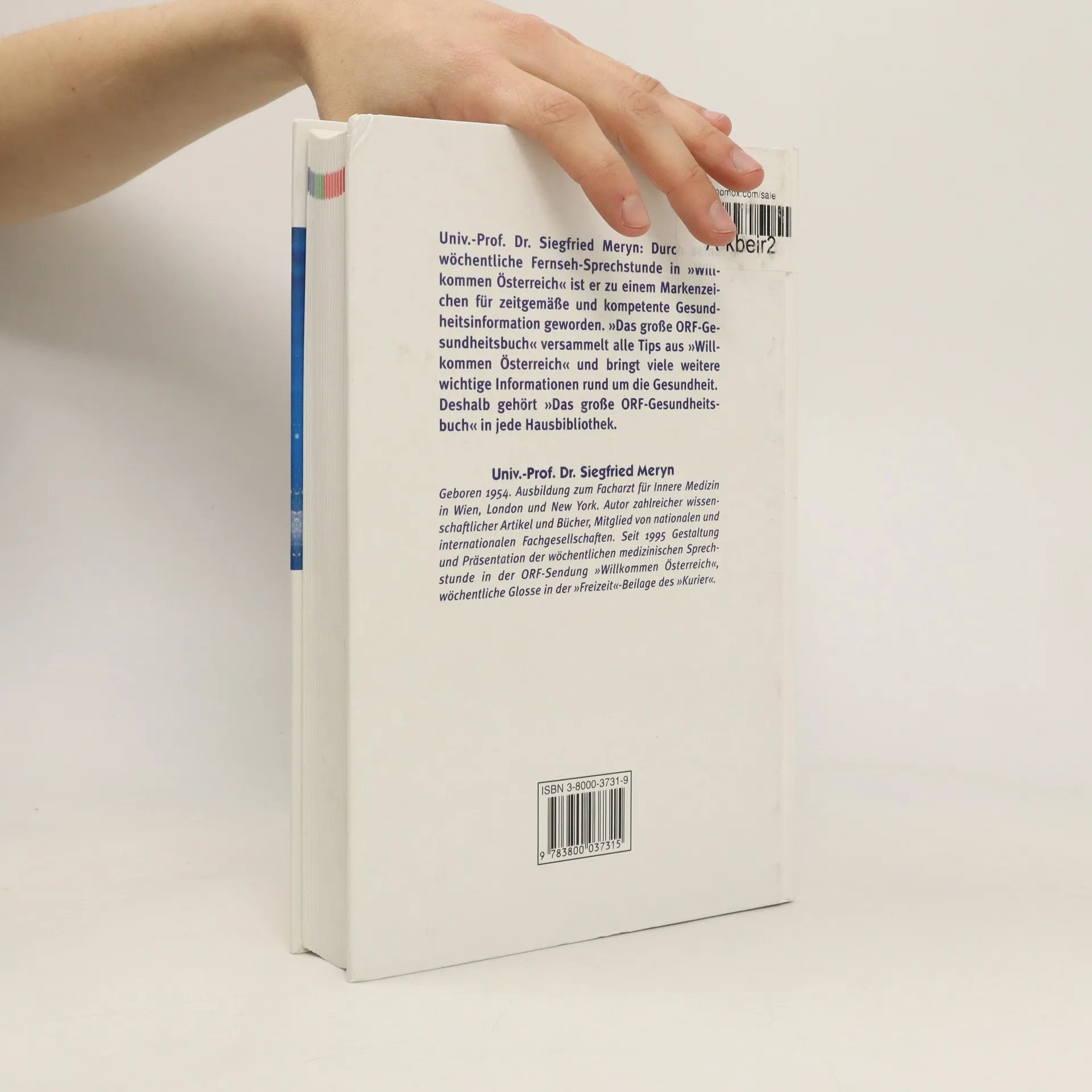 Dr. Siegfried Meryn: Durch seine wöchentliche Fernseh-Sprechstunde in Willkommen Österreich und seine Glossen im Kurier ist er zu einem Markenzeichen für zeitgemäße und kompetente Gesundheitsinformation geworden. „Das große ORF-Gesundheitsbuch“ von Univ.-Prof. Dr. Siegfried Meryn ist ein moderner, umfassender Gesundheitsratgeber. Nicht mehr und nicht weniger. Er enthält im Abschnitt „Gesund leben“ alle wichtigen Informationen über gesunden Lebensstil, gesunde Ernährung, gesunden Schlaf, Streßmanagement, Fitneß und Sport, Körper und Seele. „Gesund bleiben“ informiert über regelmäßige Gesundheitschecks und die richtige Vorbereitung auf Arzt, Spital und Operation, stellt Erste Hilfe, Impfungen und Medikamente der Schul- und Alternativmedizin vor und warnt vor „Wundermitteln“. „Gesund werden“ schließlich listet weit über 100 Beschwerden auf, beschreibt ihre Symptome und Ursachen und zeigt die verschiedensten Heilmöglichkeiten auf. Deshalb gehört „Das große ORF-Gesundheitsbuch“ in jede Hausbibliothek.