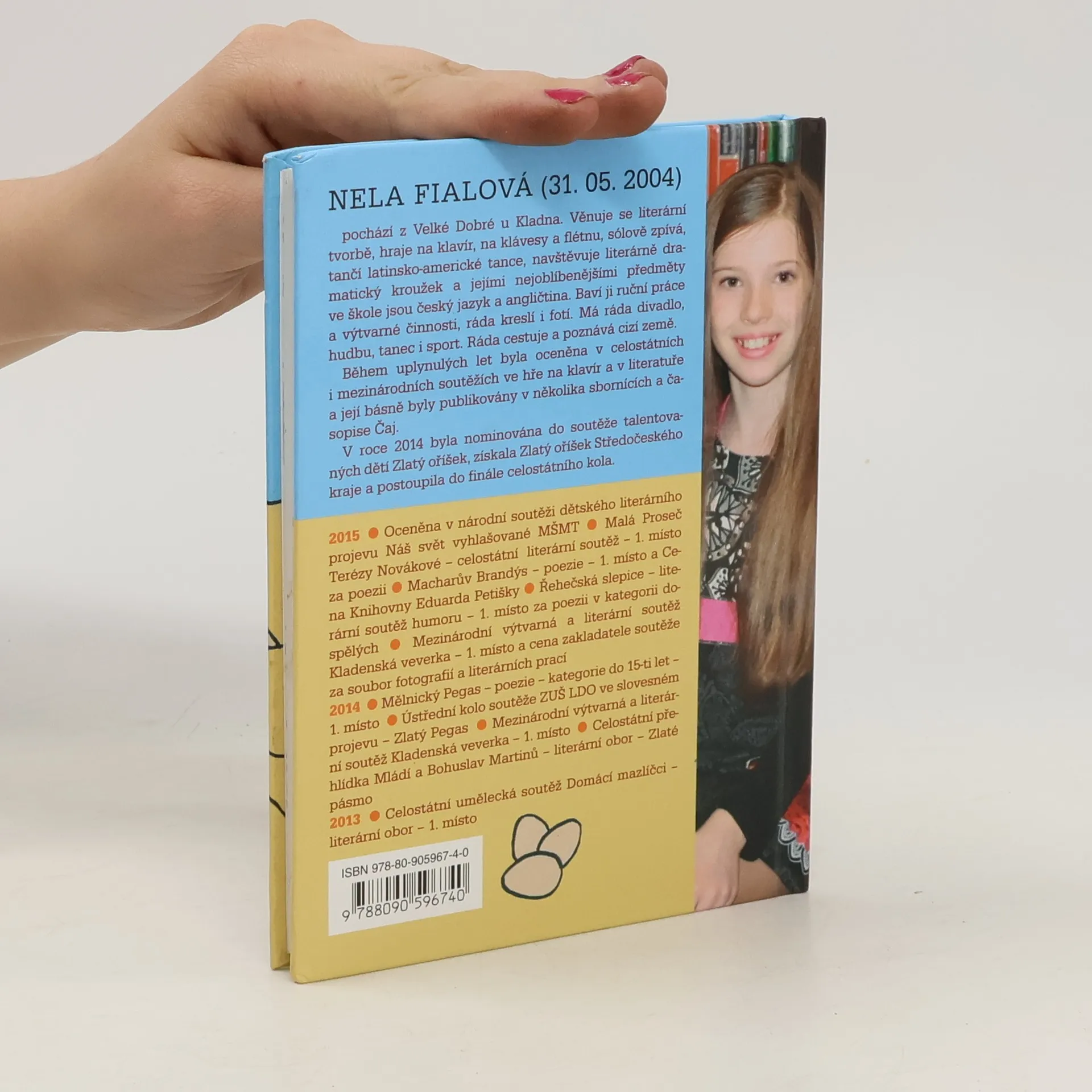 Knížka hravé poezie nejen pro děti je pozoruhodná především skutečností, že autorce překvapivě nápaditých a vtipných básniček je teprve jedenáct let... Nela Fialová už má ovšem za sebou řadu úspěchů v mnoha literárních soutěžích, které dokázaly, že smysl pro hledání neotřelých rýmů, přirozený rytmus veršů a schopnost budovat příběhy na malé literární ploše jsou jí dány už od malička. Sbírku básní o zvířatech i domácích a školních radostech a strastech doprovázejí ilustrace mladého výtvarníka Miroslava Hoštičky a neotřelá grafická úprava.