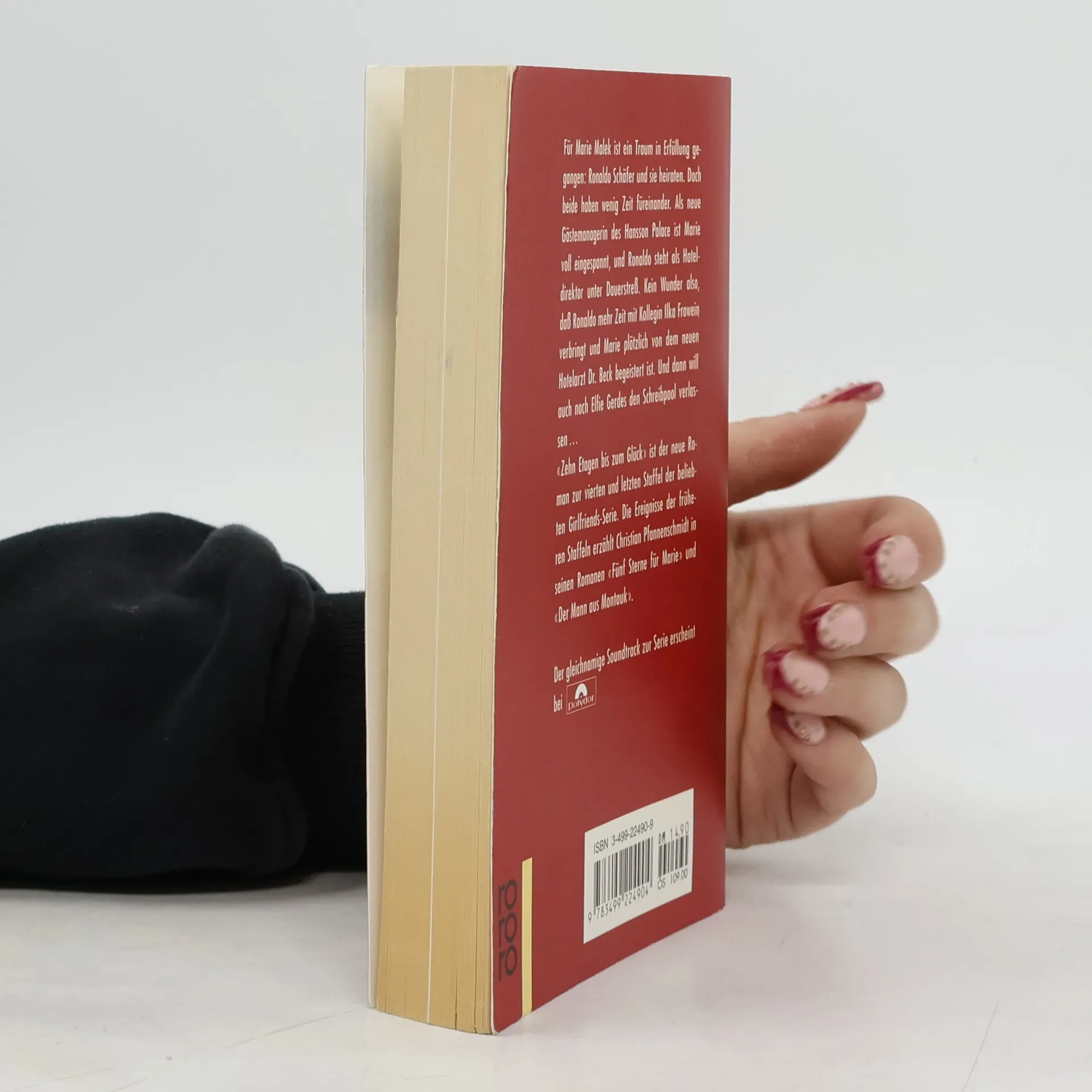 Für Marie Malek ist ein Traum in Erfüllung gegangen: Ronaldo Schäfer und sie heiraten. Doch beide haben wenig Zeit füreinander. Als neue Gästemanagerin des Hansson Palace ist Marie voll eingespannt, und Ronaldo steht als Hoteldirektor unter Dauerstreß. Kein Wunder also, daß Ronaldo mehr Zeit mit Kollegin Ilka Frowein verbringt und Marie plötzlich von dem neuen Hotelarzt Dr. Beck begeistert ist. Und dann will auch noch Elfie Gerdes den Schreibpool verlassen. „Zehn Etagen bis zum Glück“ ist der neue Roman zur vierten und letzten Staffel der beliebten Girlfriends-Serie.