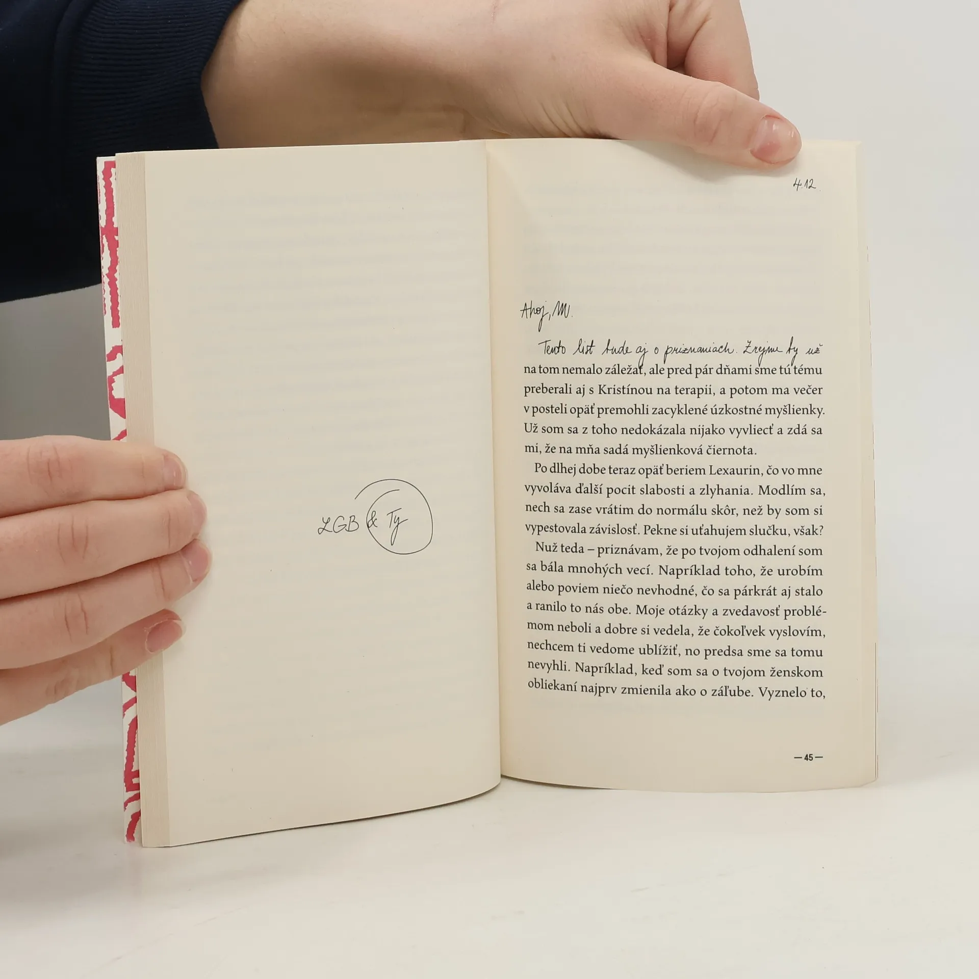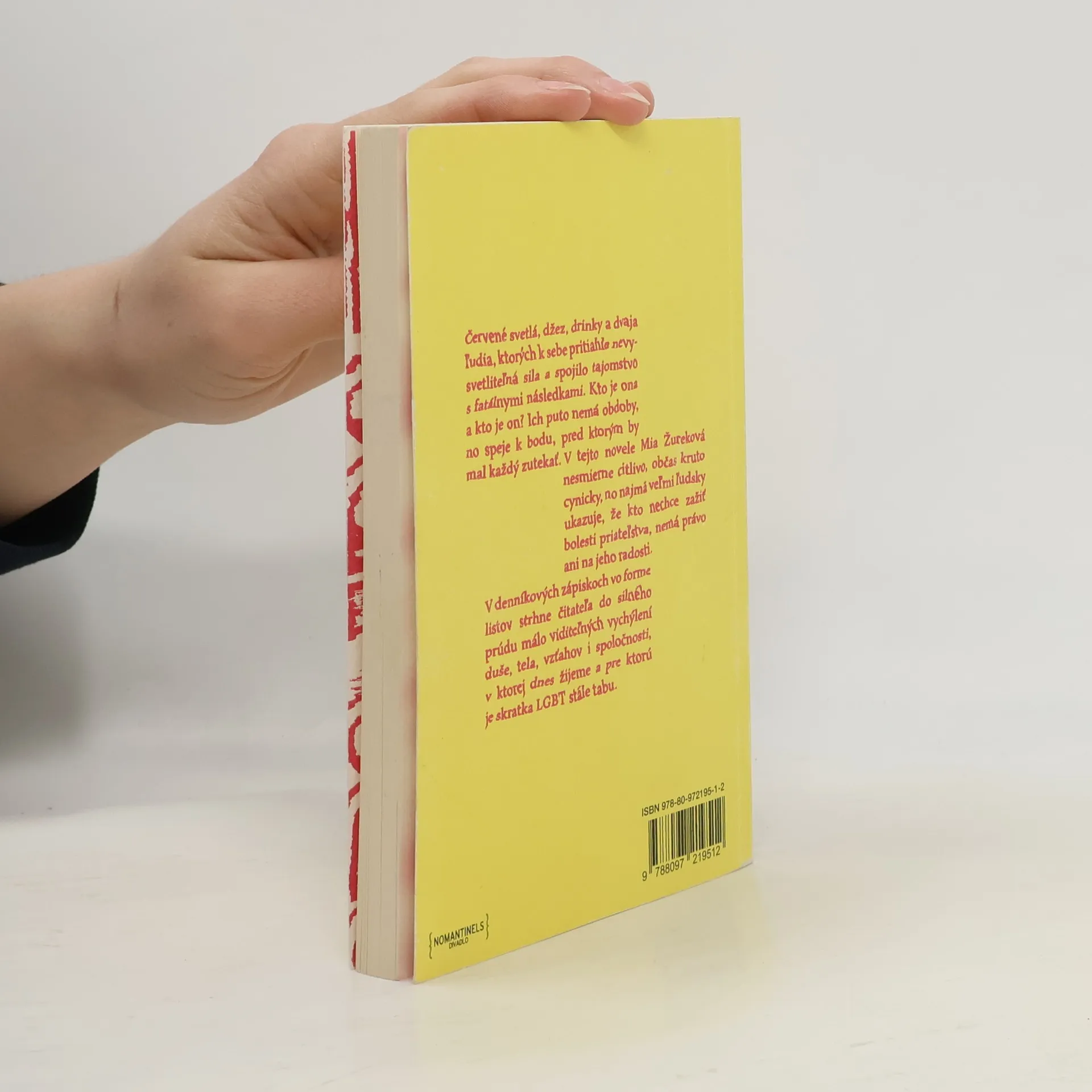 Červené svetlá, džez, drinky a dvaja ľudia, ktorých k sebe pritiahla nevysvetliteľná sila a spojilo tajomstvo s fatálnymi následkami. Kto je ona a kto je on? Ich puto nemá obdoby, no speje k bodu, pred ktorým by mal každý zutekať. V tejto novele však Mia Žureková nesmierne citlivo, občas kruto cynicky, no najmä veľmi ľudsky ukazuje, že kto nechce zažiť bolesti priateľstva, nemá právo ani na jeho radosti. V denníkových zápiskoch vo forme listov okamžite strhne čitateľa do silného prúdu málo viditeľných vychýlení duše, tela, vzťahov i spoločnosti, v ktorej dnes žijeme a pre ktorú je skratka LGBT niekedy ešte stále tabu.