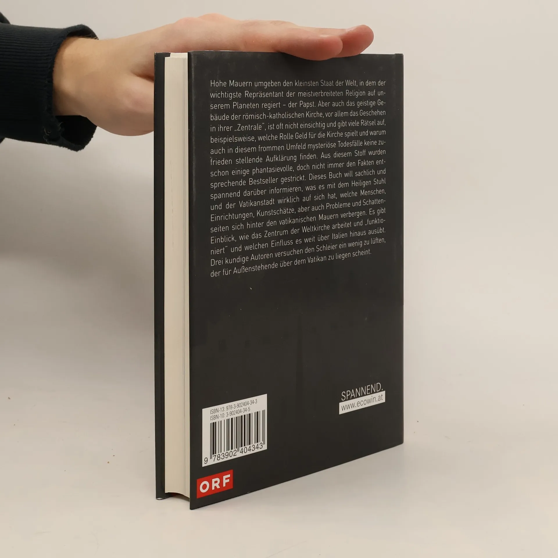 Hohe Mauern umgeben den kleinsten Staat der Welt, in dem der wichtigste Repräsentant der meistverbreiteten Religion auf unserem Planeten regiert – der Papst. Aber auch das geistige Gebäude der römisch-katholischen Kirche, vor allem das Geschehen in ihrer „Zentrale“, ist oft nicht einsichtig und gibt viele Rätsel auf, beispielsweise, welche Rolle Geld für die Kirche spielt und warum auch in diesem frommen Umfeld mysteriöse Todesfälle keine zufrieden stellende Aufklärung finden. Aus diesem Stoff wurden schon einige phantasievolle, doch nicht immer den Fakten entsprechende Bestseller gestrickt. Dieses Buch will sachlich und spannend darüber informieren, was es mit dem Heiligen Stuhl und der Vatikanstadt wirklich auf sich hat, welche Menschen, Einrichtungen, Kunstschätze, aber auch Probleme und Schattenseiten sich hinter den vatikanischen Mauern verbergen. Es gibt Einblick, wie das Zentrum der Weltkirche arbeitet und „funktioniert“ und welchen Einfluss es weit über Italien hinaus ausübt. Drei kundige Autoren versuchen den Schleier ein wenig zu lüften, der für Außenstehende über dem Vatikan zu liegen scheint.