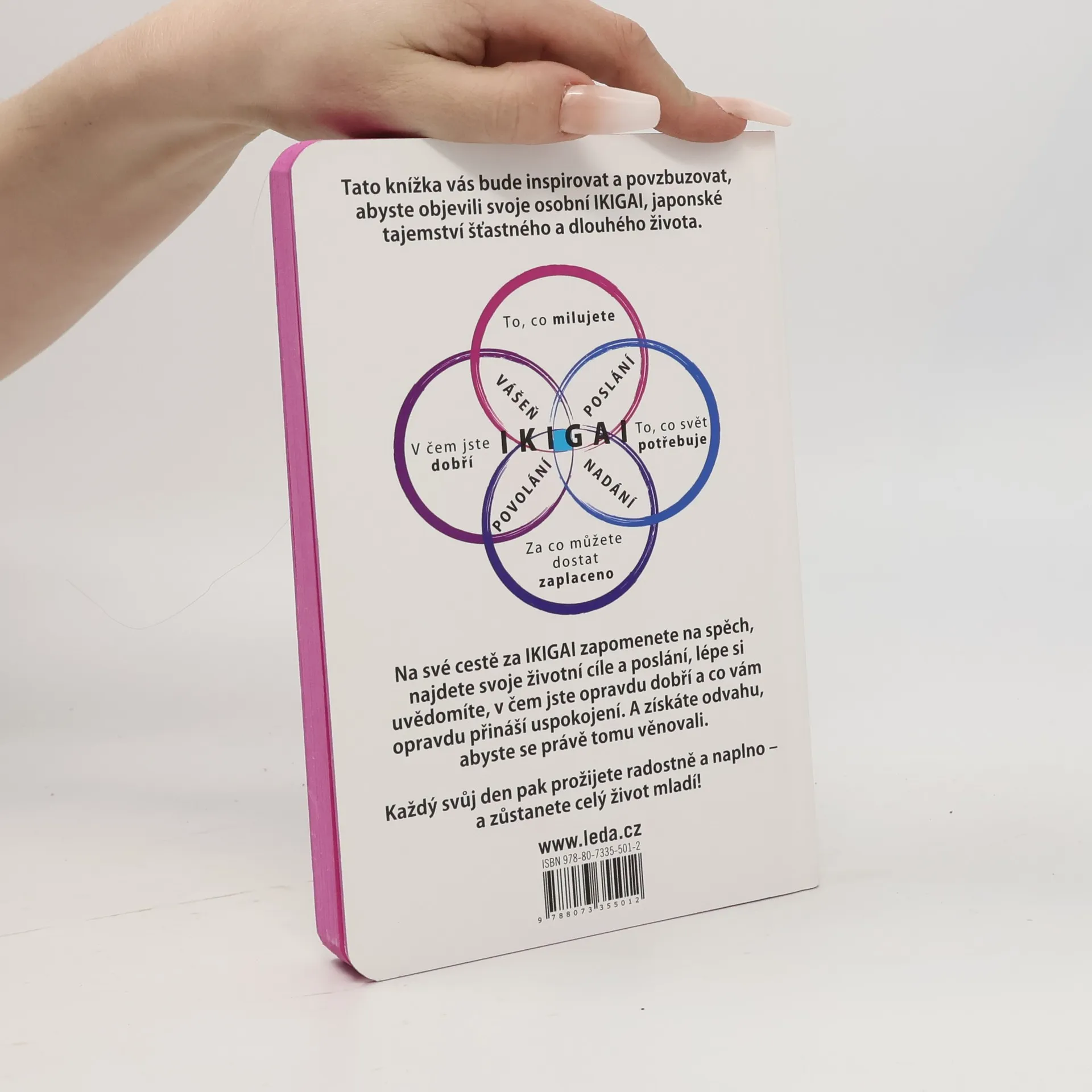 Tato knížka vás bude inspirovat a povzbuzovat, abyste objevili svoje osobní IKIGAI, japonské tajemství dlouhého a šťastného života. Nabídne vám cestu, na které zapomenete na spěch, najdete svoje životní cíle a poslání, lépe si uvědomíte, v čem jste opravdu dobří a co vám opravdu přináší uspokojení. A najdete odvahu, abyste se právě tomu věnovali. Každý svůj den pak prožijete radostně a naplno – a zůstanete celý život mladí!
