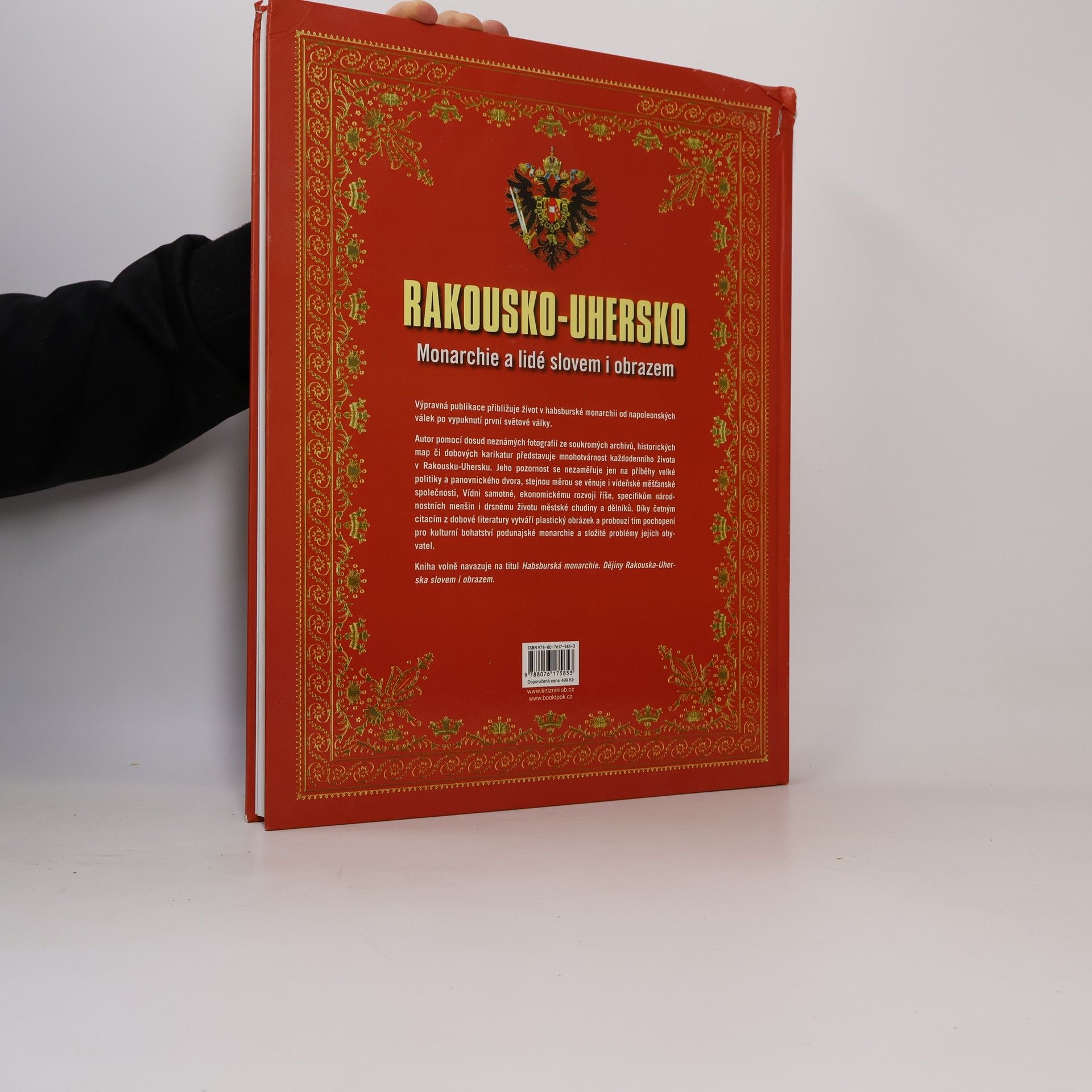 RAKOUSKO-UHERSKO Monarchie a lidé slovem i obrazem Výpravná publikace přibližuje život v habsburské monarchii od napoleonských válek po vypuknutí první světové války. Autor pomocí dosud neznámých fotografií ze soukromých archivů, historických map či dobových karikatur představuje mnohotvárnost každodenního života v Rakousku-Uhersku. Jeho pozornost se nezaměřuje jen na příběhy velké politiky a panovnického dvora, stejnou měrou se věnuje i vídeňské měšťanské společnosti, Vídni samotné, ekonomickému rozvoji říše, specifikům národnostních menšin i drsnému životu městské chudiny a dělníků. Díky četným citacím z dobové literatury vytváří plastický obrázek a probouzí tím pochopení pro kulturní bohatství podunajské monarchie a složité problémy jejích obyvatel. Kniha volně navazuje na titul Habsburská monarchie. Dějiny Rakouska-Uherska Slovem i obrazem.