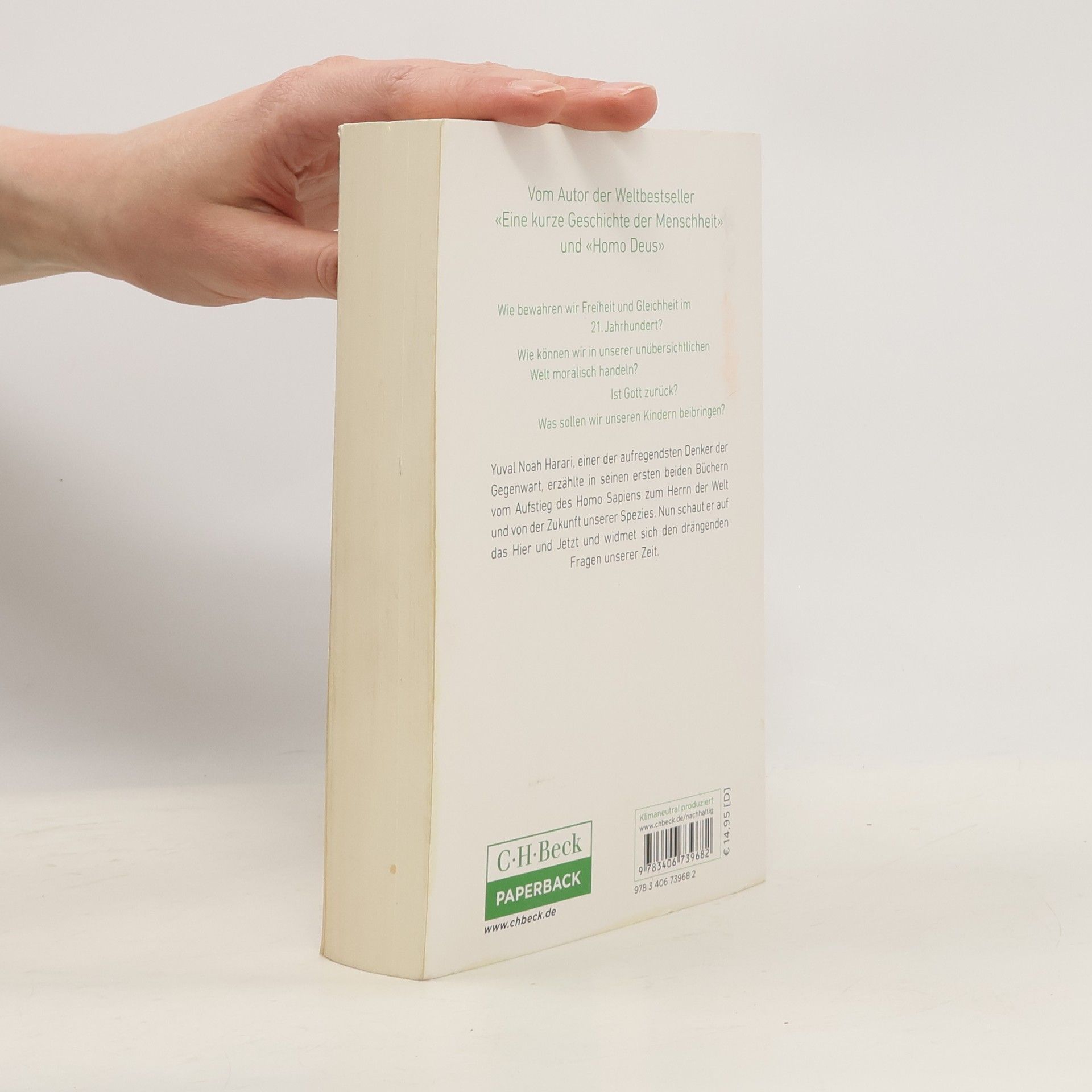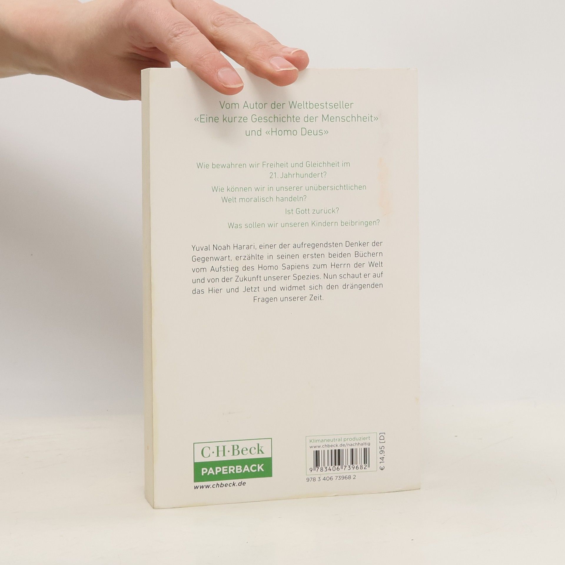 Was sollten wir unseren Kindern heute beibringen, damit sie für die Welt von morgen gerüstet sind? – Der Bestseller von Yuval Noah Harari Was sind die großen Herausforderungen, vor denen die Menschheit steht? Wer sind wir und was sollen wir mit unserem Leben anfangen? Seit Jahrtausenden fragt die Menschheit nach dem Sinn des Lebens. Doch jetzt setzen uns die ökologische Krise, die wachsende Bedrohung durch Massenvernichtungswaffen und der Aufstieg neuer disruptiver Technologien unter Zeitdruck. Irgendjemand wird darüber entscheiden müssen, wie wir die Macht nutzen, die künstliche Intelligenz und Biotechnologie bereit halten. Yuval Noah Harari will Menschen dazu anregen, sich an den großen Debatten unserer Zeit zu beteiligen.