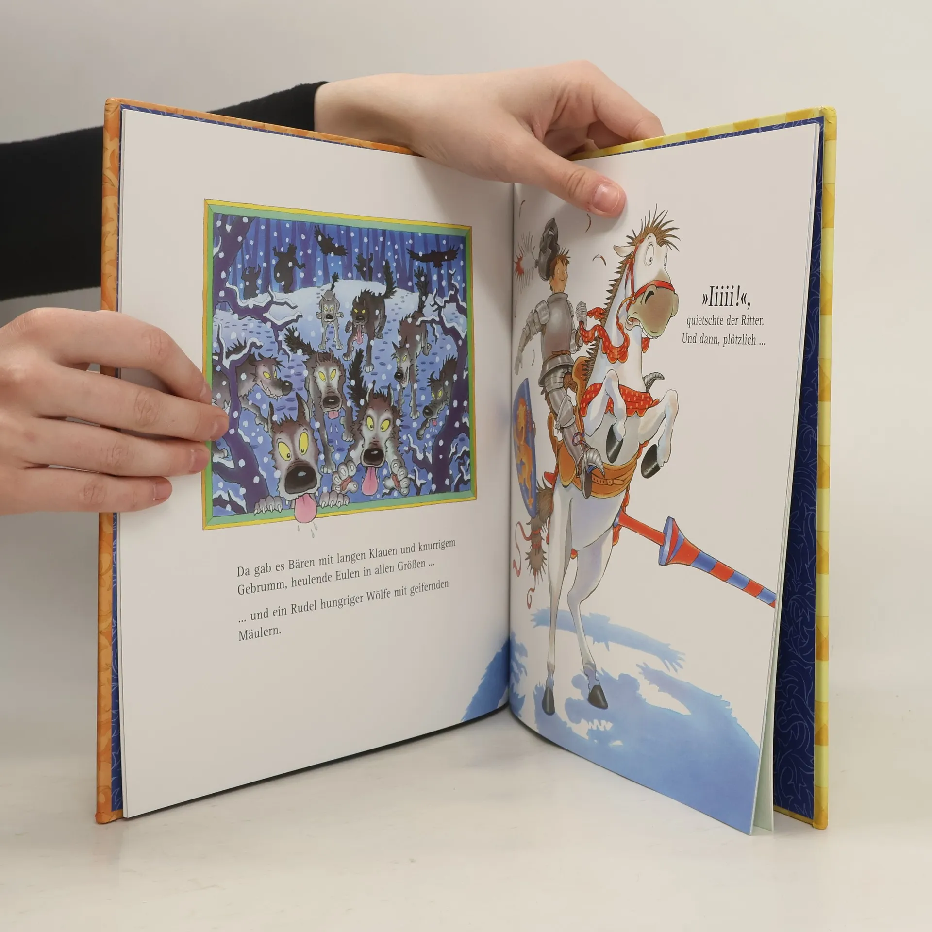 Ein Ritter auf der Suche nach einem vorwitzigen Kuss. Es ist Zeit, ins Bett zu gehen - und der König wirft seinem Sohn einen schnellen Gute-Nacht-Kuss zu. Doch der königliche Kuss für den kleinen Prinzen verfehlt sein Ziel. Er entwischt in den wilden Wald, wo viele gefährliche Tiere leben: Bären mit langen Klauen, heulen Eulen und hungrige Wölfe. Ein tapferer und furchtloser Ritter wird losgeschickt, der den Kuss zurückbringen soll. Aber das ist gar nicht so einfach! Eine zauberhafte Gutenachtgeschichte mit fantasievollen, ideenreichen Bildern.