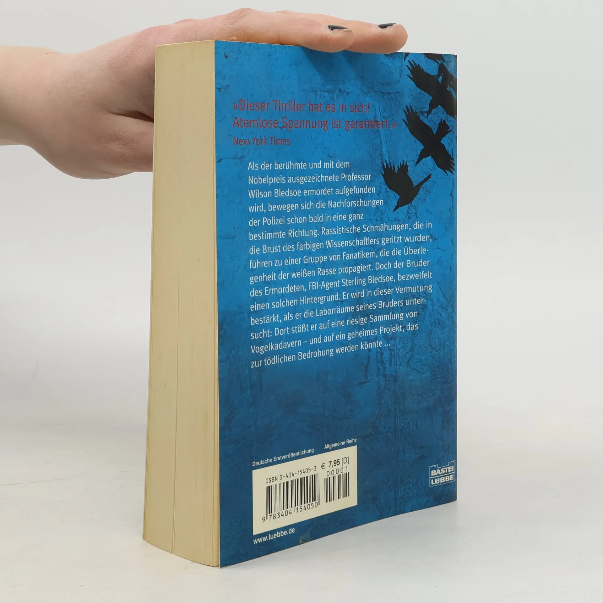 Als der berühmte und mit dem Nobelpreis ausgezeichnete Professor Wilson Bledsoe ermordet aufgefunden wird, bewegen sich die Nachforschungen der Polizei schon bald in eine ganz bestimmte Richtung. Rassistische Schmähungen, die in die Brust des farbigen Wissenschaftlers geritzt wurden, führen zu einer Gruppe von Fanatikern, die die Überlegenheit der weißen Rasse propagiert. Doch der Bruder des Ermordeten, FBI-Agent Sterling Bledsoe, bezweifelt einen solchen Hintergrund. Er wird in dieser Vermutung bestärkt, als er die Laborräume seines Bruders untersucht: Dort stößt er auf eine riesige Sammlung von Vogelkadavern - und auf ein geheimes Projekt, das zur tödlichen Bedrohung werden könnte ...