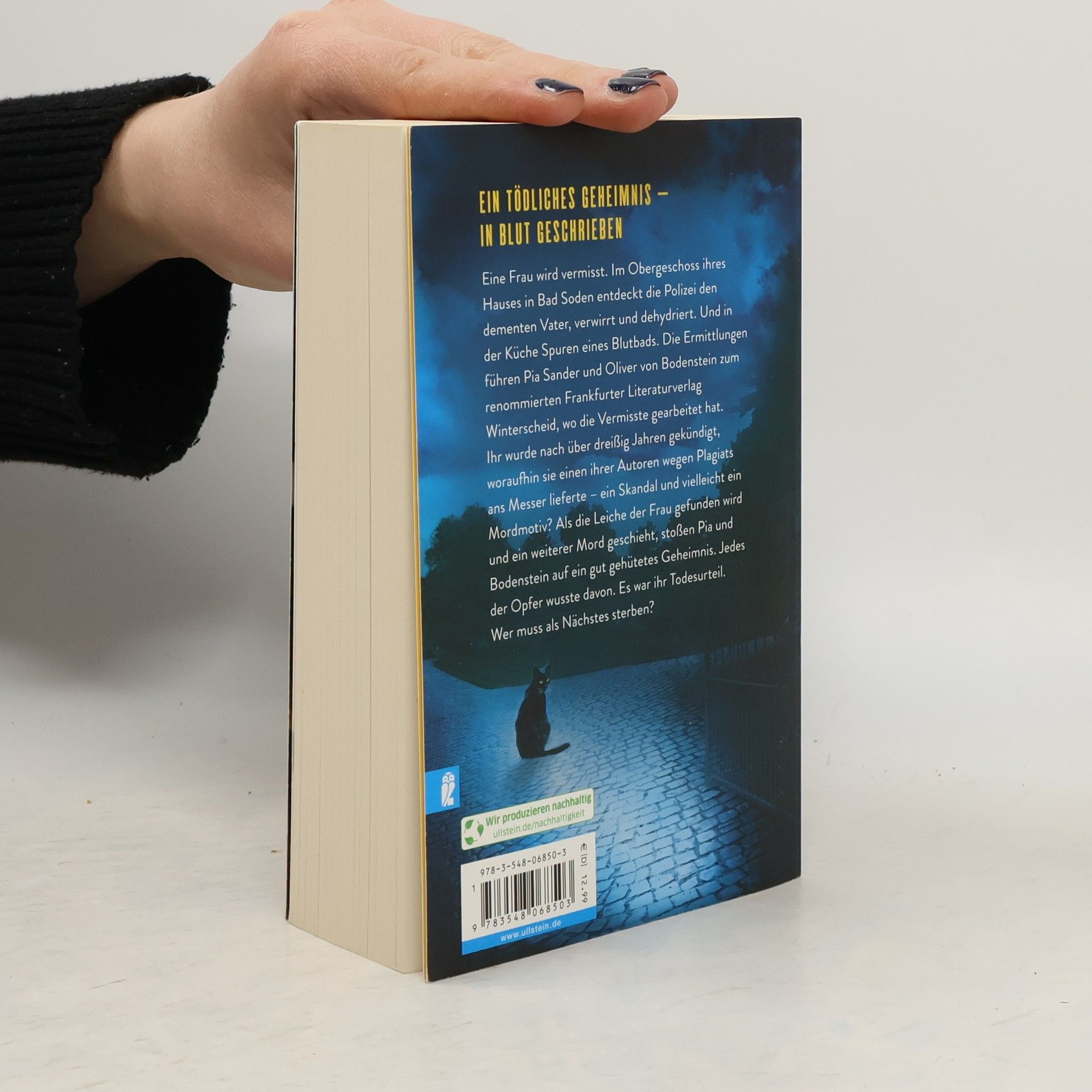 Ein tödliches Geheimnis – in Blut geschrieben Der neue Krimi von Nr.1-Bestsellerautorin Nele Neuhaus! Eine Frau wird vermisst. Im Obergeschoss ihres Hauses in Bad Soden findet die Polizei den dementen Vater, verwirrt und dehydriert. Und in der Küche Spuren eines Blutbads. Die Ermittlungen führen Pia Sander und Oliver von Bodenstein zum renommierten Frankfurter Literaturverlag Winterscheid, wo die Vermisste Programmleiterin war. Ihr wurde nach über dreißig Jahren gekündigt, woraufhin sie einen ihrer Autoren wegen Plagiats ans Messer lieferte – ein Skandal und vielleicht ein Mordmotiv? Als die Leiche der Frau gefunden wird und ein weiterer Mord geschieht, stoßen Pia und Bodenstein auf ein gut gehütetes Geheimnis. Beide Opfer kannten es. Das war ihr Todesurteil. Wer muss als Nächstes sterben? Pia und Bodenstein jagen einen Täter, der ihnen immer einen Schritt voraus zu sein scheint ...