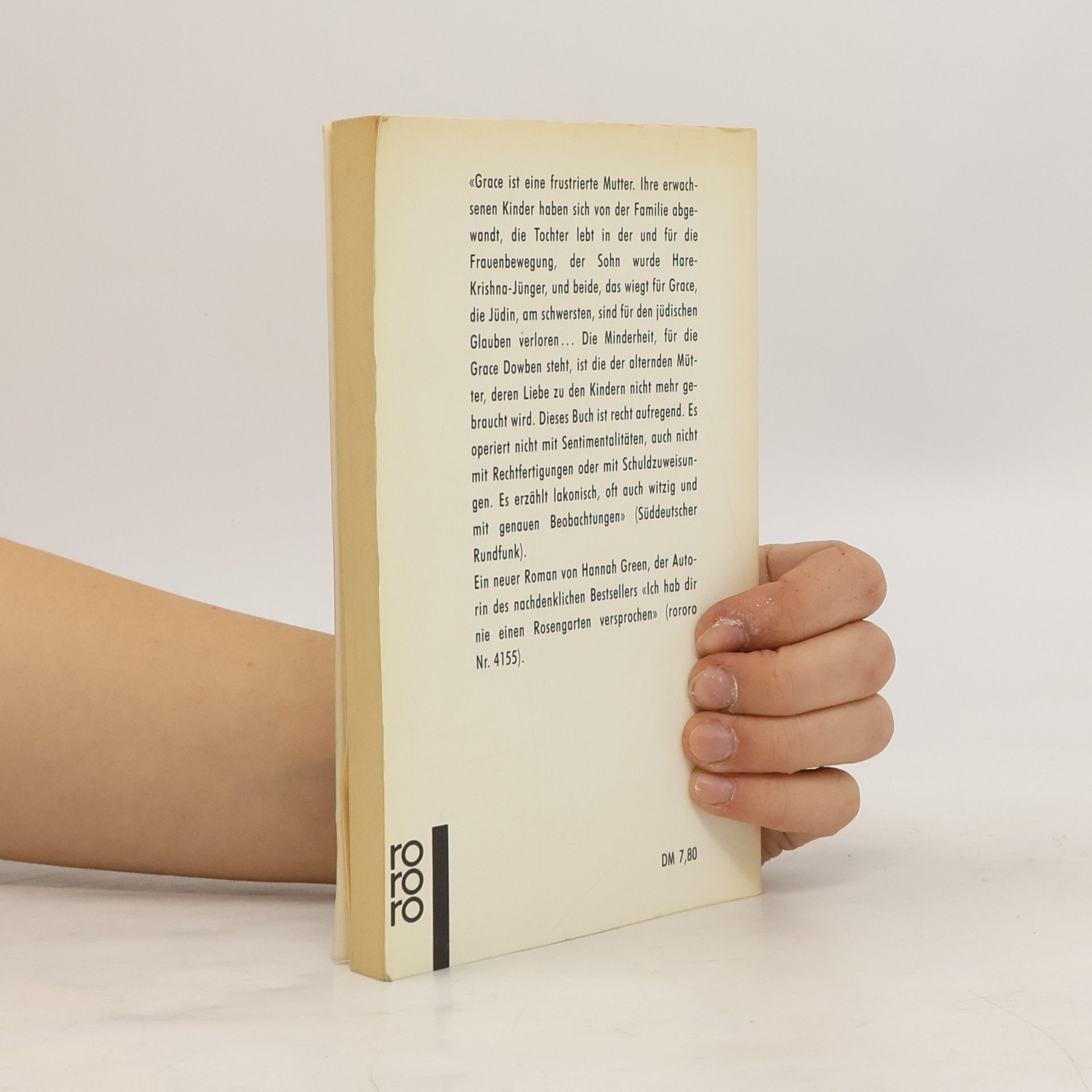 Hannah Green (eigtl. Joanne Greenberg), 1932 in New York geboren, studierte inWashington, London und Denver. Heute lebt sie, verheiratet mit einem Psychotherapeuten, in Colorado und hat zwei Söhne.