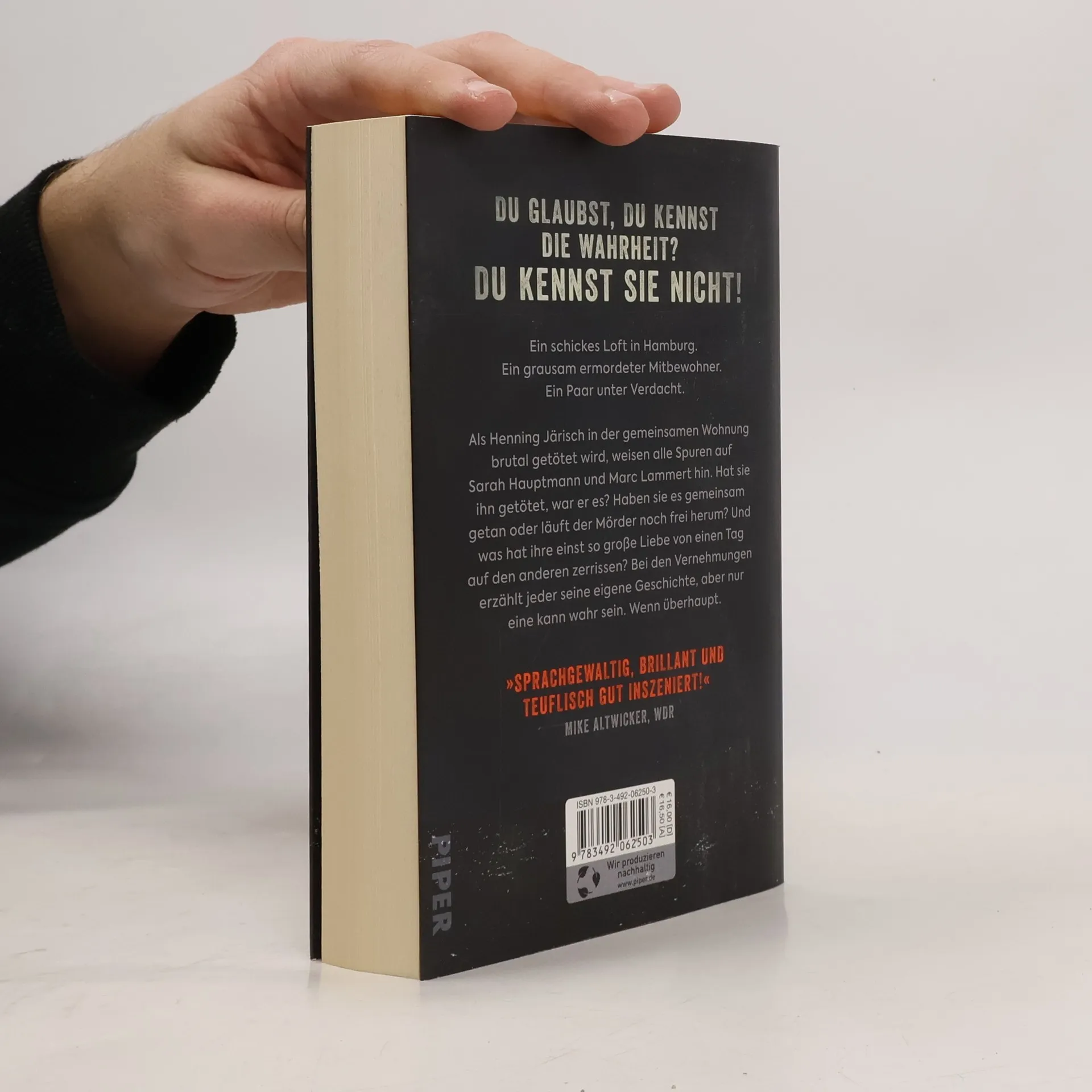 Drei sind einer zu viel Ein schickes Loft in Hamburg. Ein Paar Anfang dreißig, Sarah und Marc, und ihr Mitbewohner Henning, Marcs bester Freund. Drei Jahre lang sind sie aufs Engste verbunden, teilen ihre Träume und Sehnsüchte. So scheint es zumindest. Dann aber wird Henning grausam ermordet, und sämtliche Spuren deuten auf Sarah und Marc. Hat sie ihn getötet, war er es? Haben sie es gemeinsam getan? Und was hat ihre einst so große Liebe von einen Tag auf den anderen zerrissen? Bei den Vernehmungen erzählt jeder seine eigene Geschichte, aber nur eine ist wahr. Wenn überhaupt … Jeder hat seine Geschichte – und seine Abgründe: Psycho-Spannung von Bestsellerautor Linus Geschke