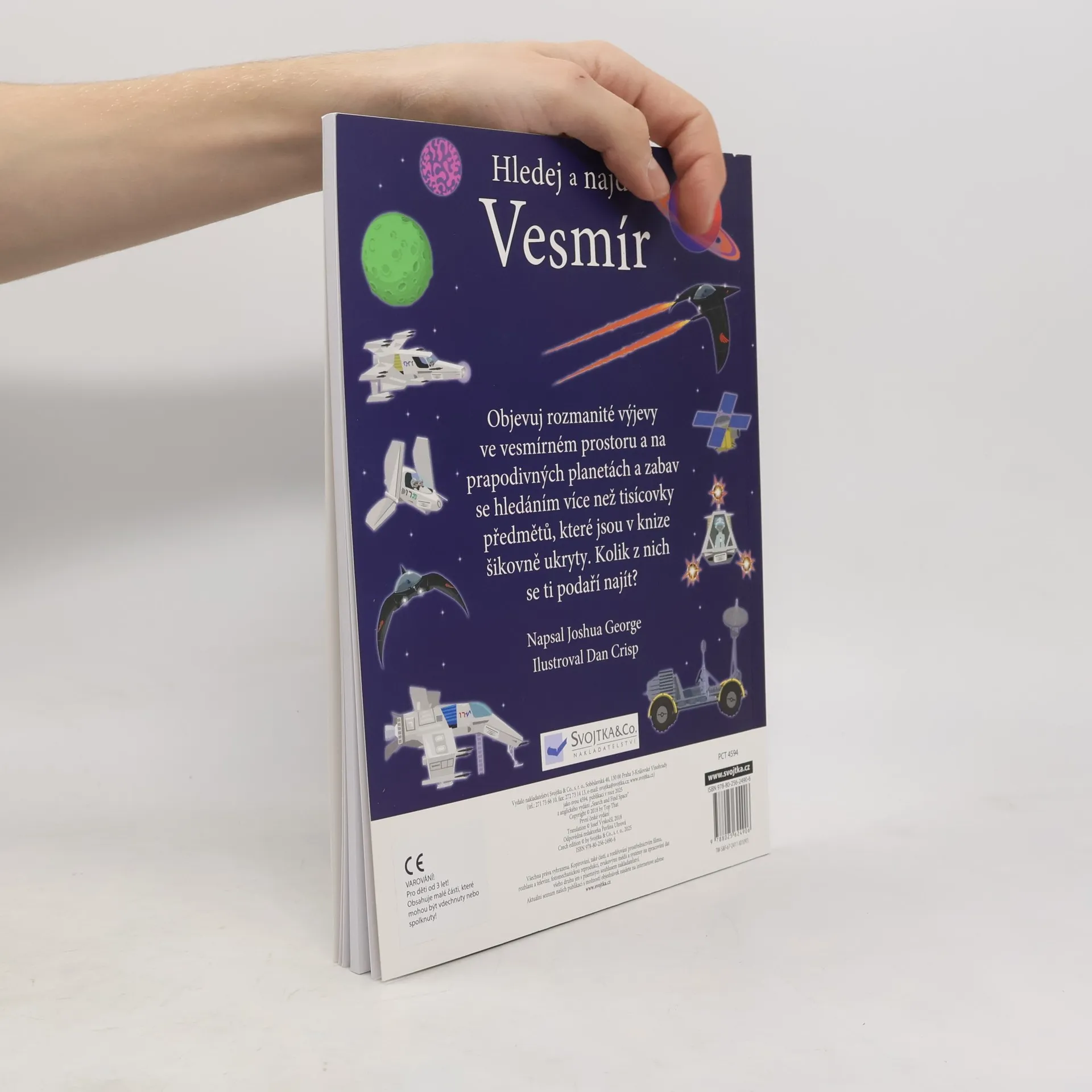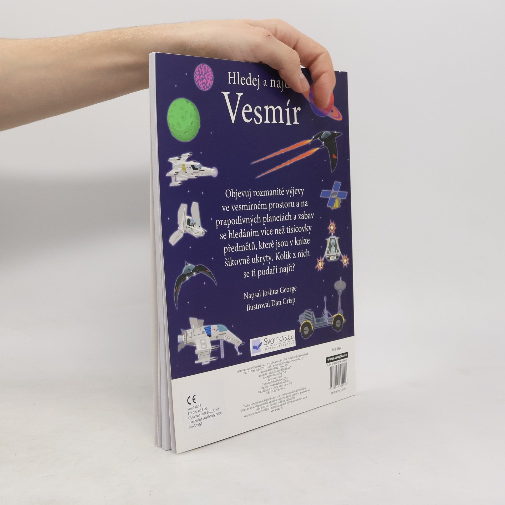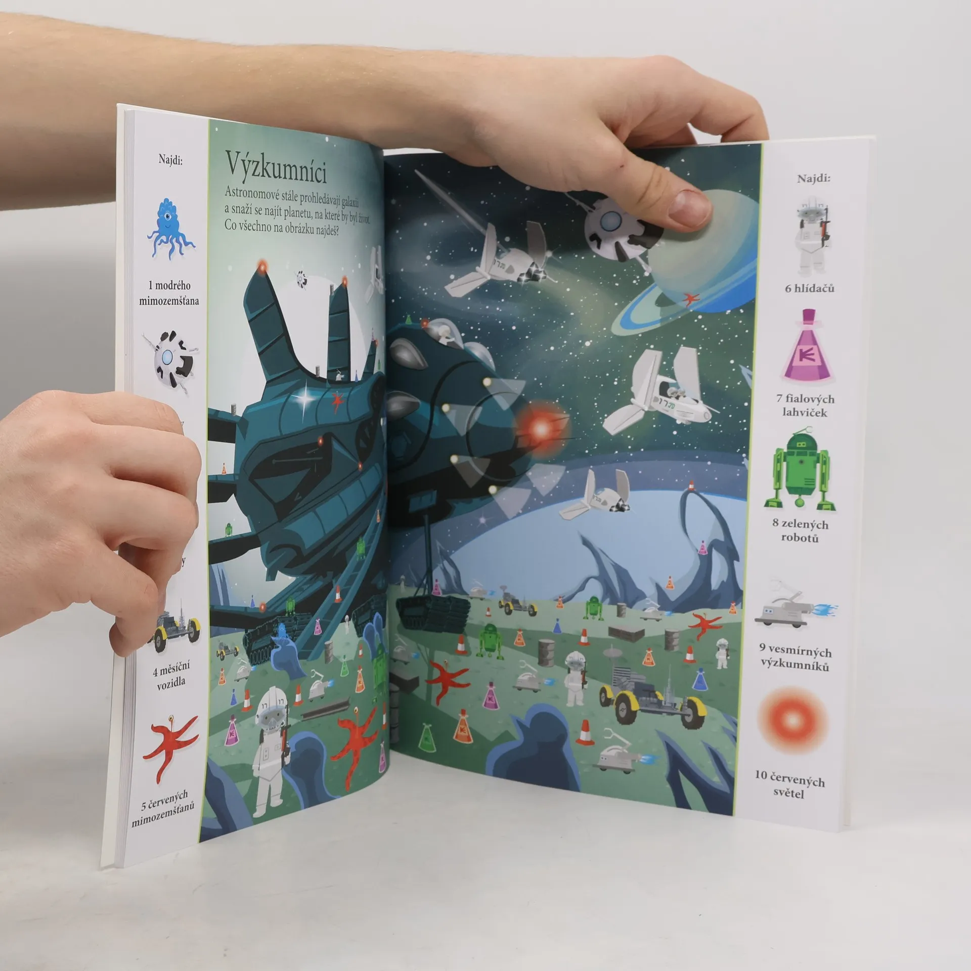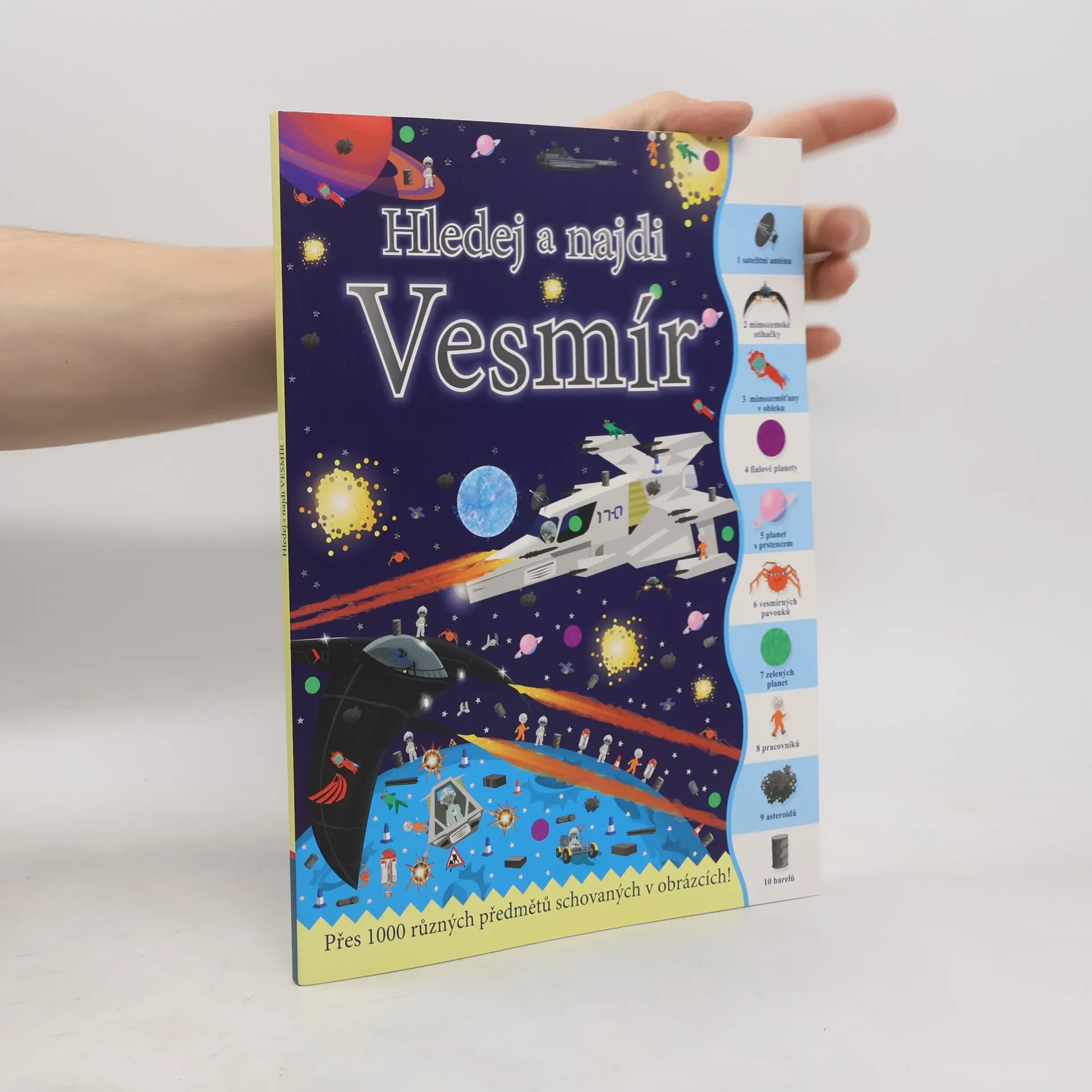 Přes 1000 různých předmětů schovaných v obrázcích! Cože, planeta dinosaurů? Ve vesmíru, jaký najdeš v tomto sešitu, je možné naprosto všechno. Objevíš na obrázku měsíc, planety, vesmírné draky i modré stíhačky? Radši si pospěš s hledáním, protože mimozemšťani už spustili útok a v řídicím středisku jsou zapotřebí všichni s bystrým zrakem, kteří by vetřelce dokázali ve vesmírném prostoru odhalit. V tomto sešitu tě čeká mnoho scenérií a situací s tematikou nejrůznějších vesmírných těles a tvorů. Stránky skýtají spoustu času zábavného hledání. Schválně, jak bystré máš smysly? Najdeš všechny předměty schované v obrázcích? Kdo a co všechno se schovává v těchto naprosto neuvěřitelných vesmírných scenériích? Objevuj rozmanité výjevy a zabav se hledáním více než tisícovky věcí, které jsou v knize šikovně ukryty. Kolik z nich se ti podaří najít?