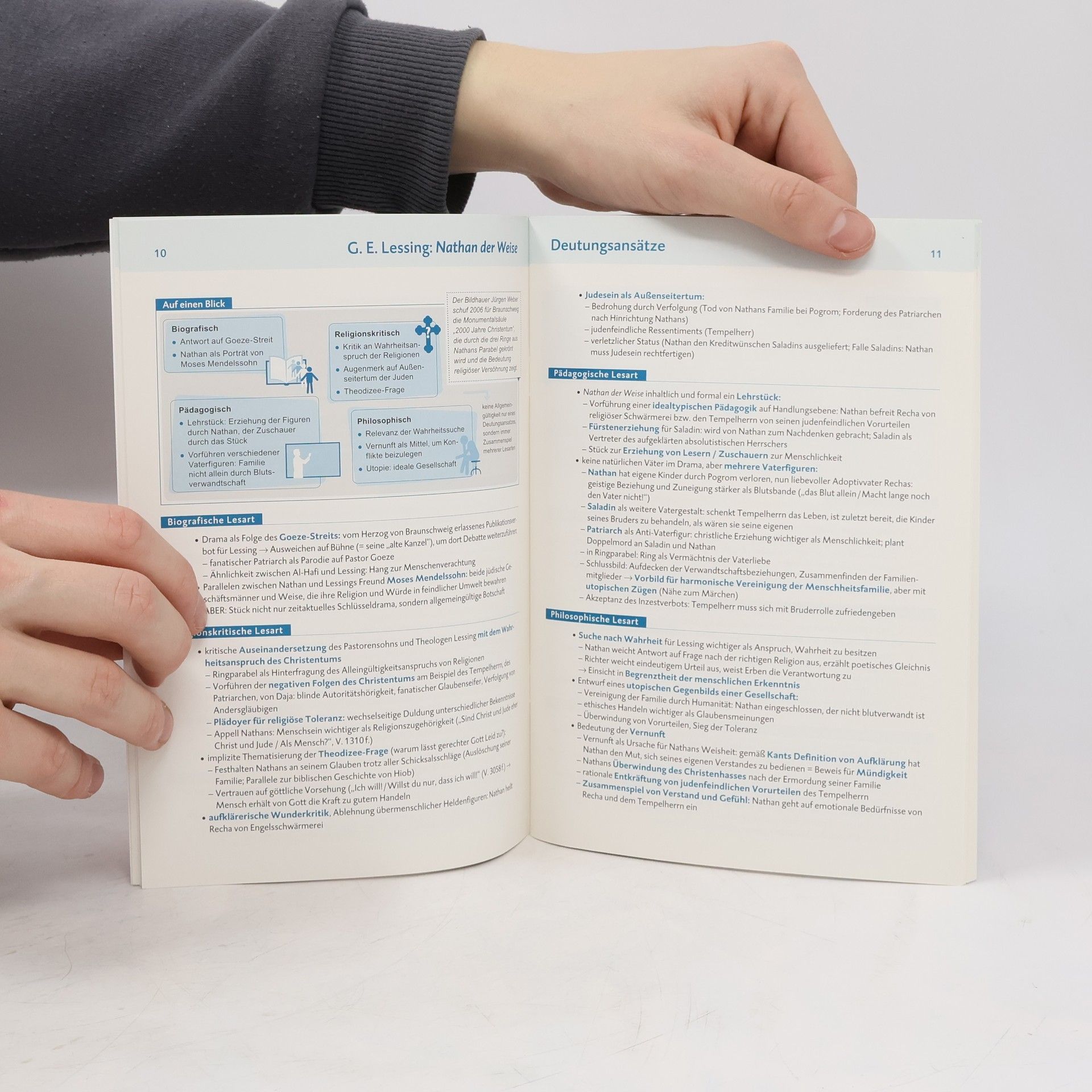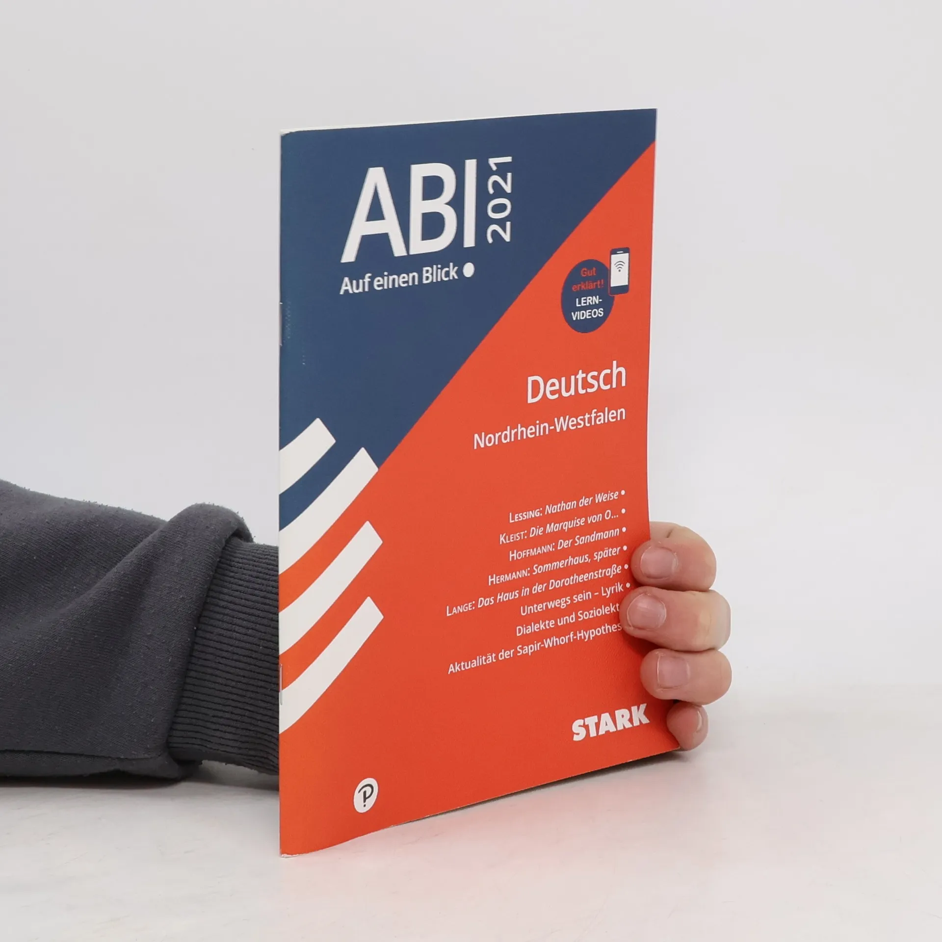 Abi – auf einen Blick! Deutsch NRW 2021 Dieses Bändchen vermittelt jeweils auf einer Doppelseite das Wichtigste zu den Schwerpunkten des Deutsch-Abiturs (GK und LK) in Nordrhein-Westfalen. Damit ist es perfekt zum zeitsparenden Nachschlagen und Wiederholen vor der Prüfung geeignet. Das Heft enthält: die wichtigsten Inhalte des Deutsch-Abiturs in Stichpunkten: „Nathan der Weise“, „Der Sandmann“, „Die Marquise von O...“, „Sommerhaus, später“, „Das Haus in der Dorotheenstraße“, Lyrik des Unterwegsseins, Dialekte und Soziolekte, Aktualität der Sapir-Whorf-These einen klar strukturierten Aufbau zusammenfassende Schaubilder eine Mini-Literaturgeschichte, einen Textsorten-Überblick sowie eine Liste mit Stilmitteln und Beispielen anschauliche Lernvideos